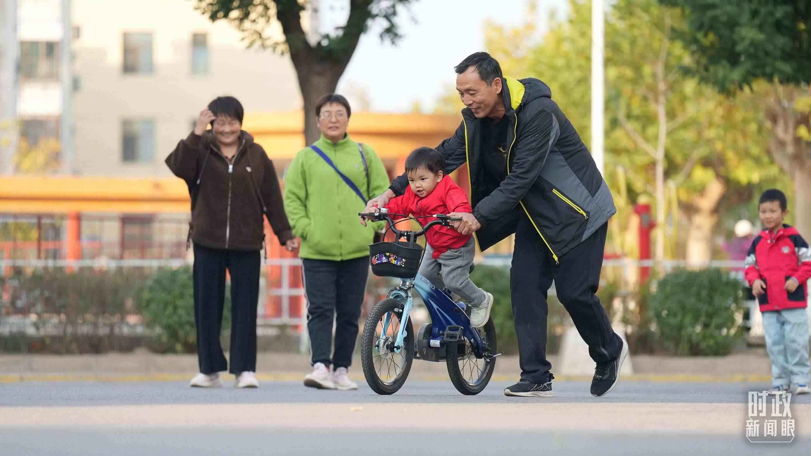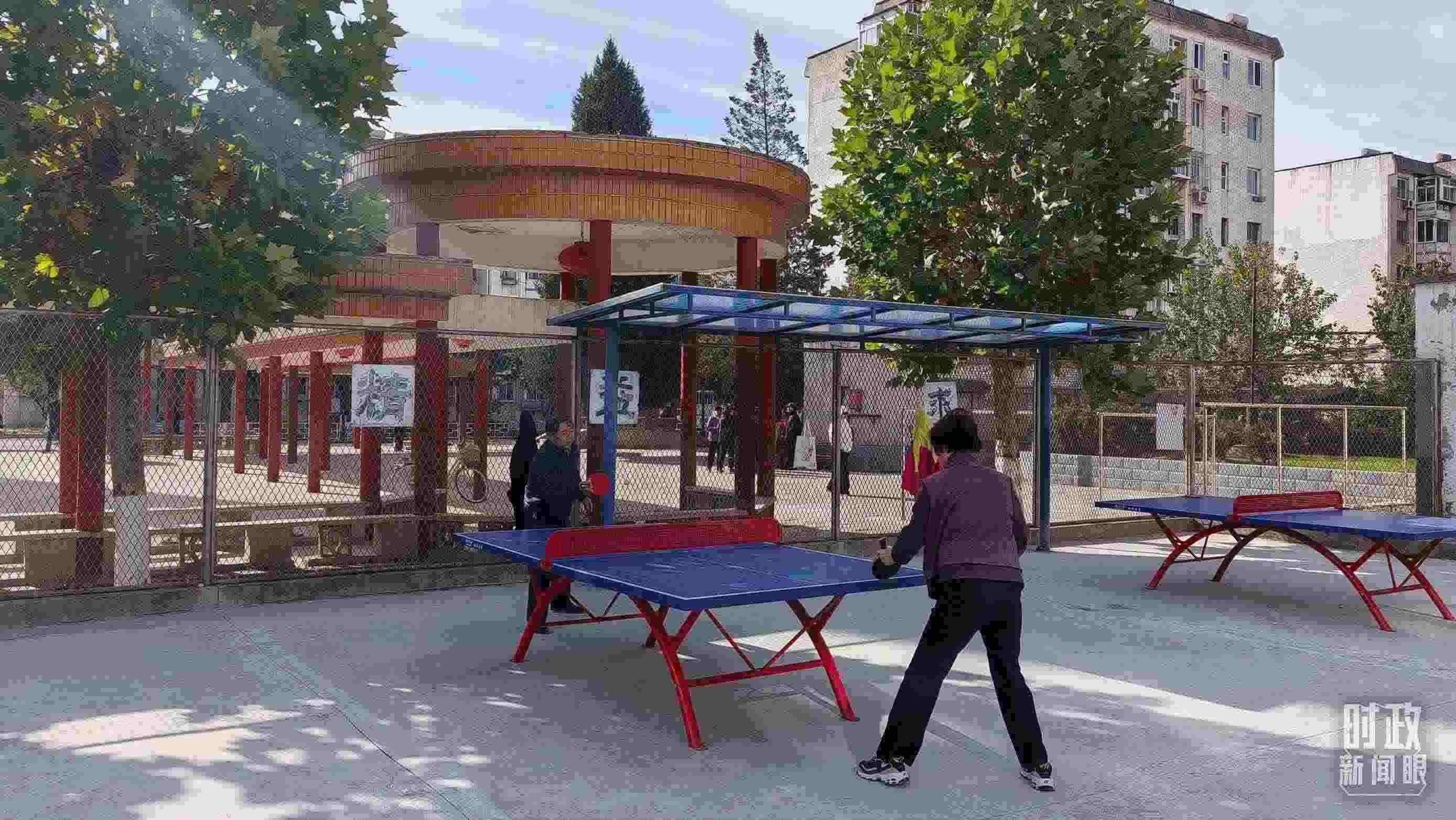 △ 涿州永濟秀園小區(qū)里的居民正在戶外打乒乓球。(總臺央視記者王萌萌拍攝)