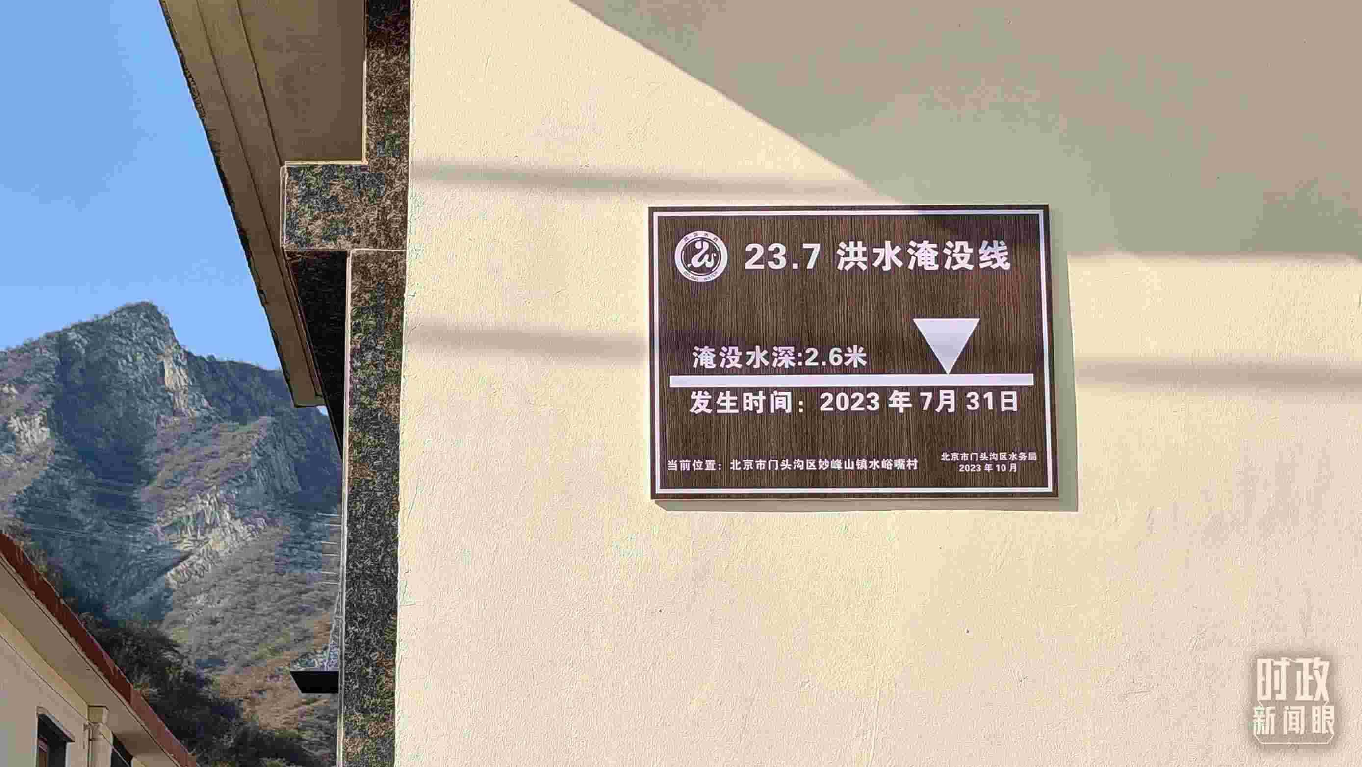 △ 村民房屋外設立了洪水淹沒線的標牌。(總臺央視記者賈林拍攝)