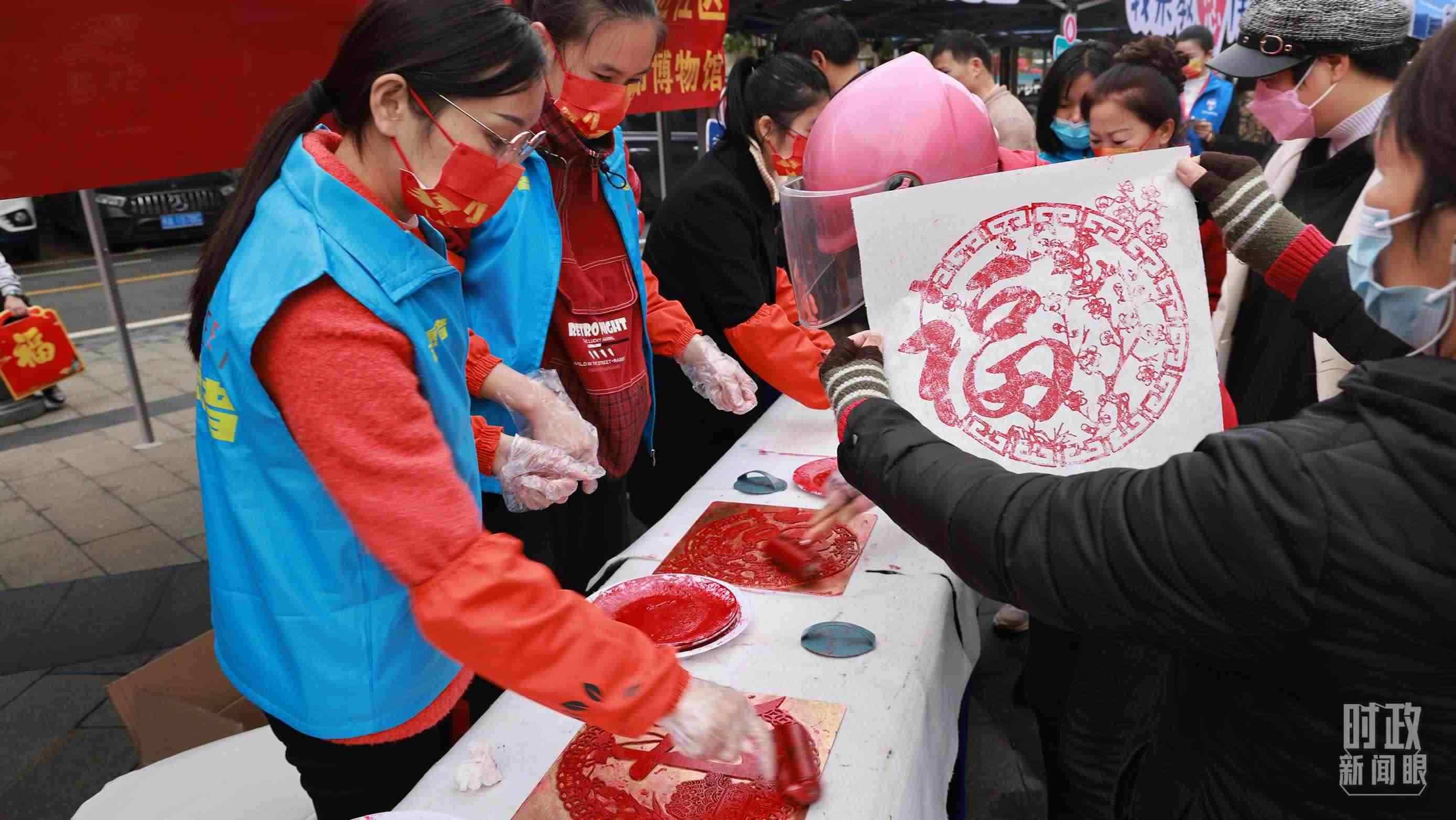 △蟠龍社區(qū)居民在社區(qū)活動上刻板畫。