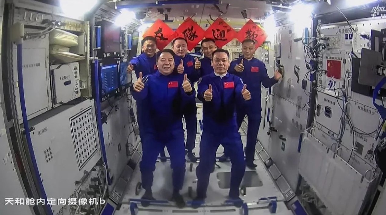 如今,中國空間站進入應用與發(fā)展階段。2023年12月31日晚,神舟十七號航天員湯洪波、唐勝杰、江新林在中國空間站收看習主席新年賀詞,三名航天員表示,要以自強不息的精神奮力攀登,把中國人的“太空家園”維護好、建設好。