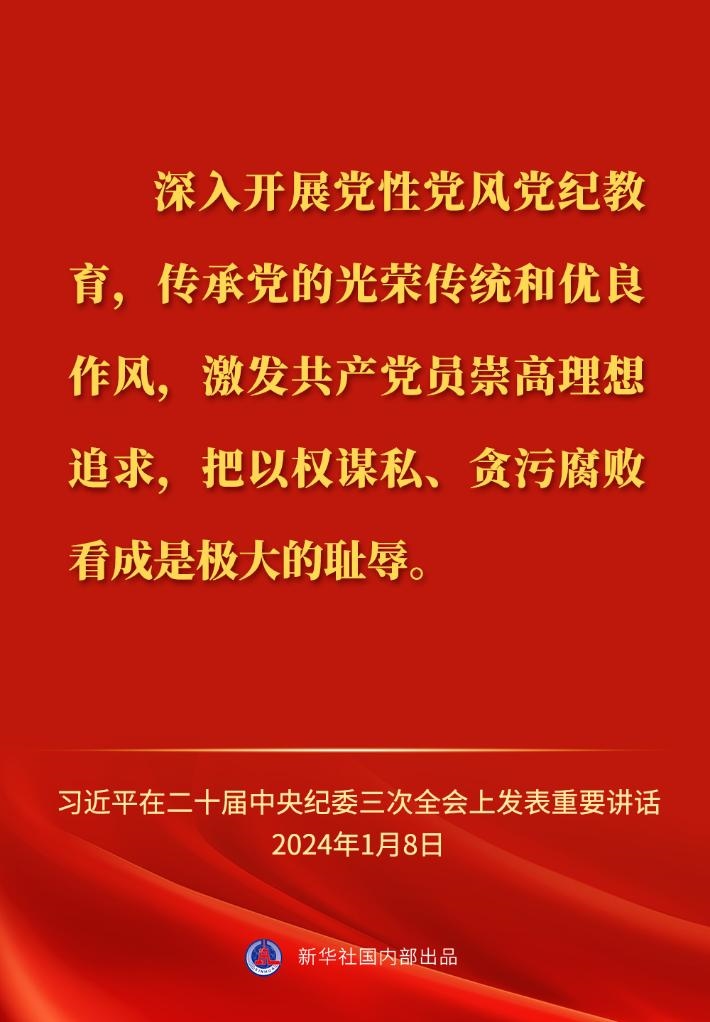 ??中共中央總書記、國(guó)家主席、中央軍委主席習(xí)近平8日上午在中國(guó)共產(chǎn)黨第二十屆中央紀(jì)律檢查委員會(huì)第三次全體會(huì)議上發(fā)表重要講話,一起來(lái)看金句。