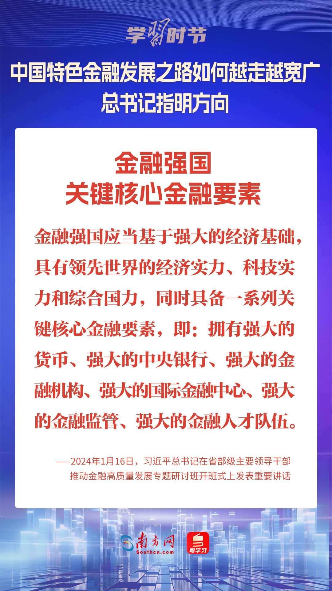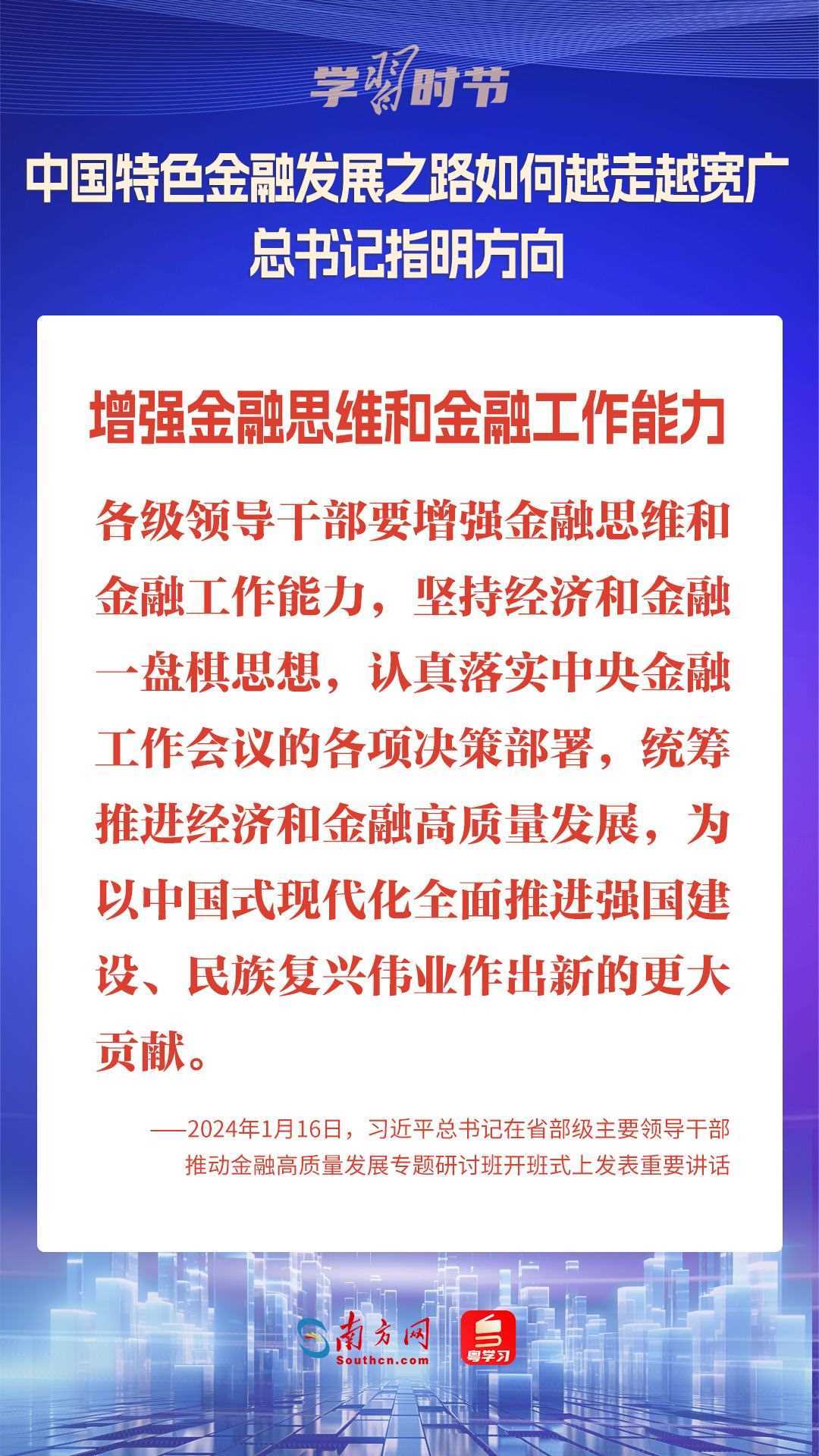 1月16日,中共中央總書記、國家主席、中央軍委主席習近平在省部級主要領(lǐng)導(dǎo)干部推動金融高質(zhì)量發(fā)展專題研討班開班式上發(fā)表重要講話,為中國特色金融發(fā)展之路指明方向。