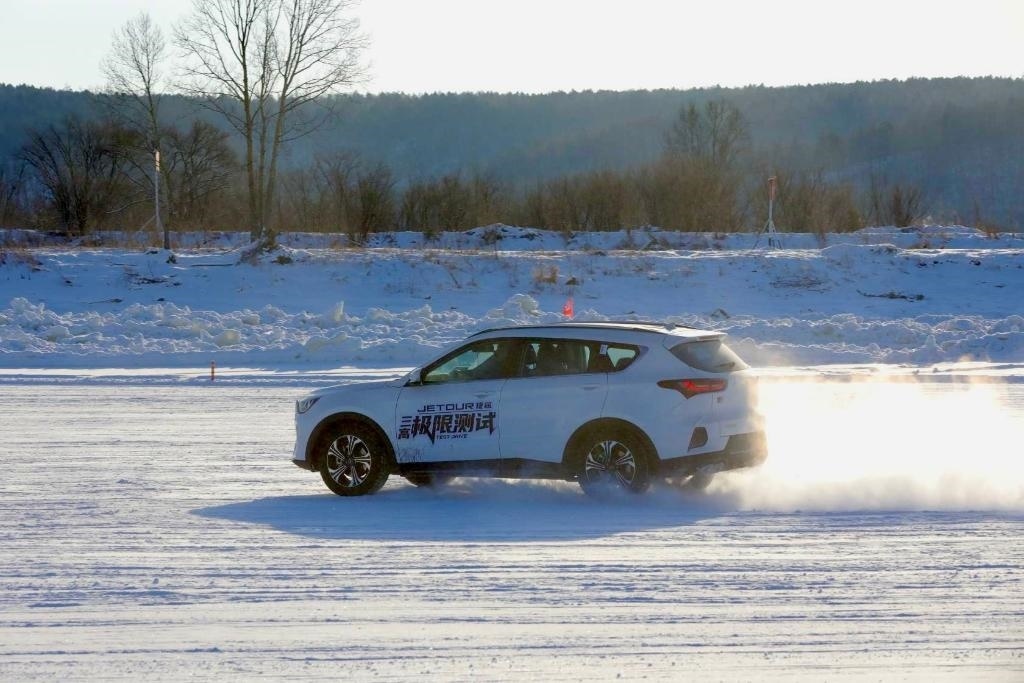 2萬多平方米的漠河紅河谷寒地試車基地內(nèi),形態(tài)多樣的冰雪路面上,雪霧彌漫,馬達(dá)轟鳴,燈光閃爍,加速、轉(zhuǎn)彎、急停、漂移……試車人員進(jìn)行著一系列“炫酷操作”,冰雪飛揚(yáng)的場地留下一串飄逸的車影。