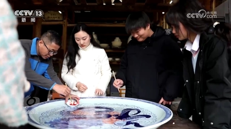 春節(jié)將近,景德鎮(zhèn)青花瓷畫(huà)坯技藝非遺傳承人孫立新和徒弟們正在制作迎接新年的龍盤(pán),要在這個(gè)直徑1米的瓷盤(pán)上用龍的造型呈現(xiàn)出福字。