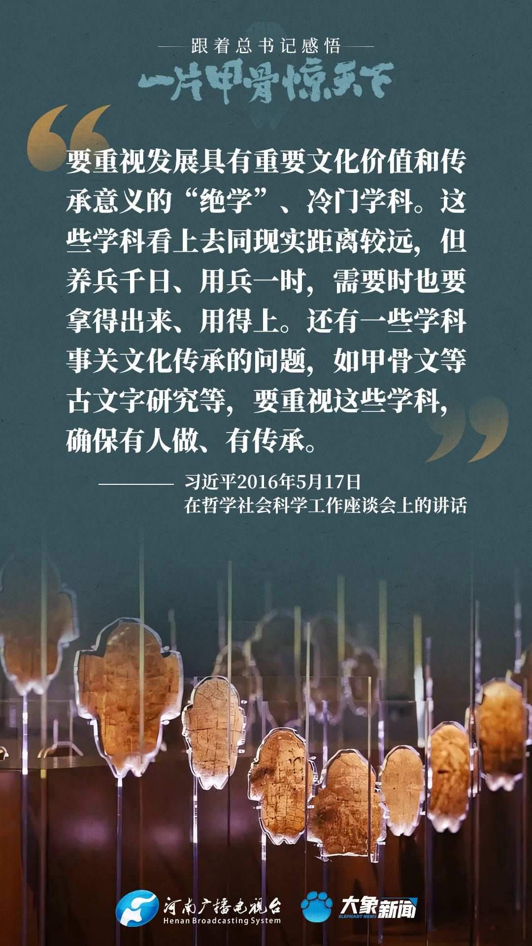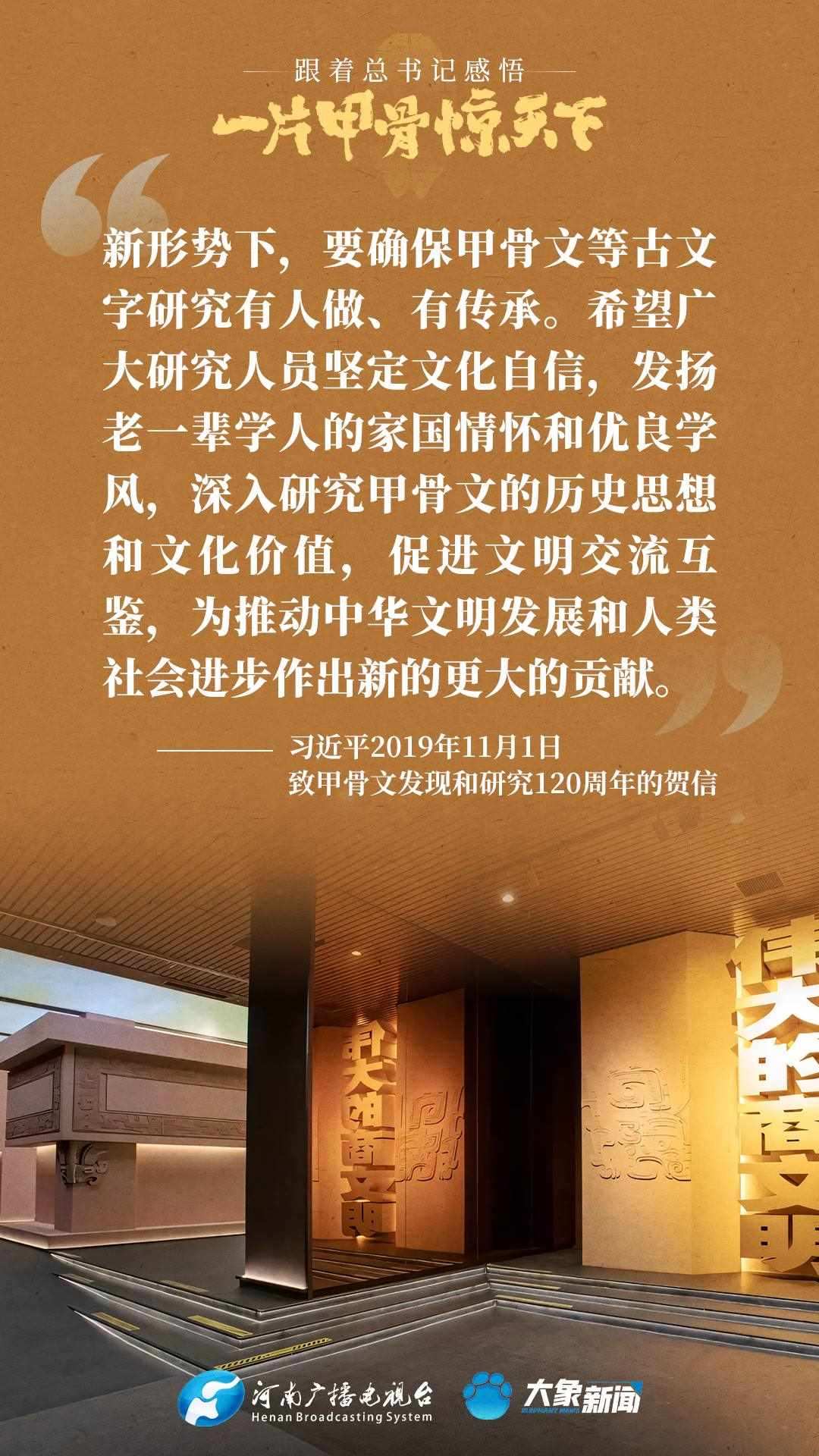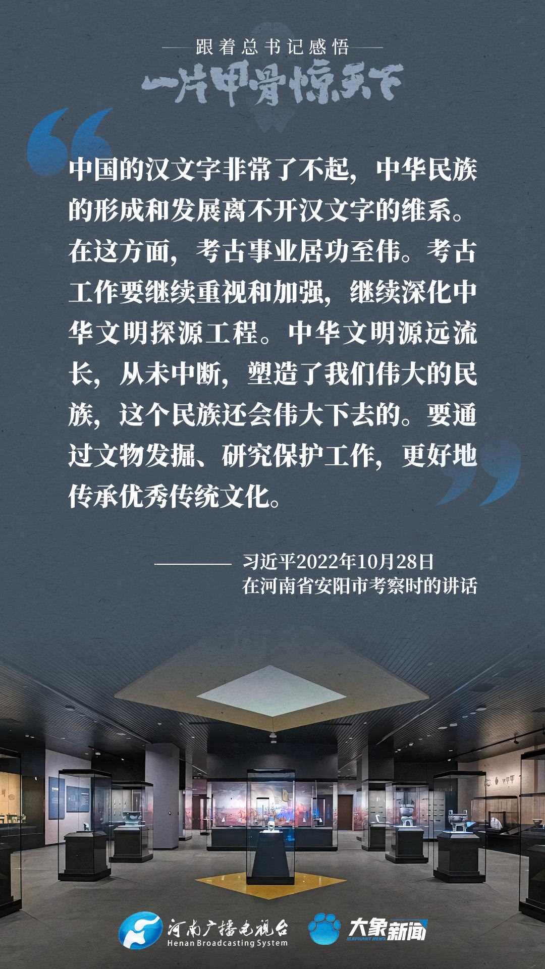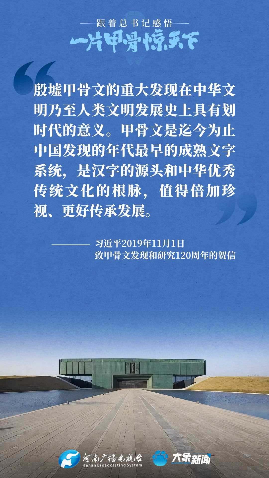 黨的十八大以來(lái),習(xí)近平總書記多次就殷墟和甲骨文保護(hù)研究利用工作作出重要講話重要指示,為我們堅(jiān)定文化自信,傳承發(fā)展中華優(yōu)秀傳統(tǒng)文化提供了根本遵循。大象新聞邀您一起回顧、學(xué)習(xí)。