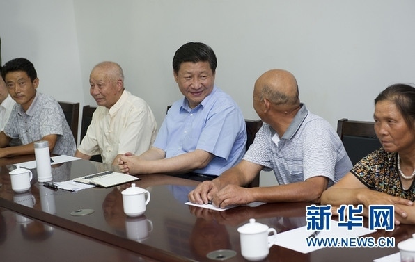 ▲2013年7月21日至23日,中共中央總書記、國家主席、中央軍委主席習近平在湖北調(diào)研全面深化改革問題和當前經(jīng)濟運行情況。 22日下午,習近平來到鄂州市長港鎮(zhèn)峒山村,了解城鄉(xiāng)一體化建設(shè)情況,同部分村民座談。