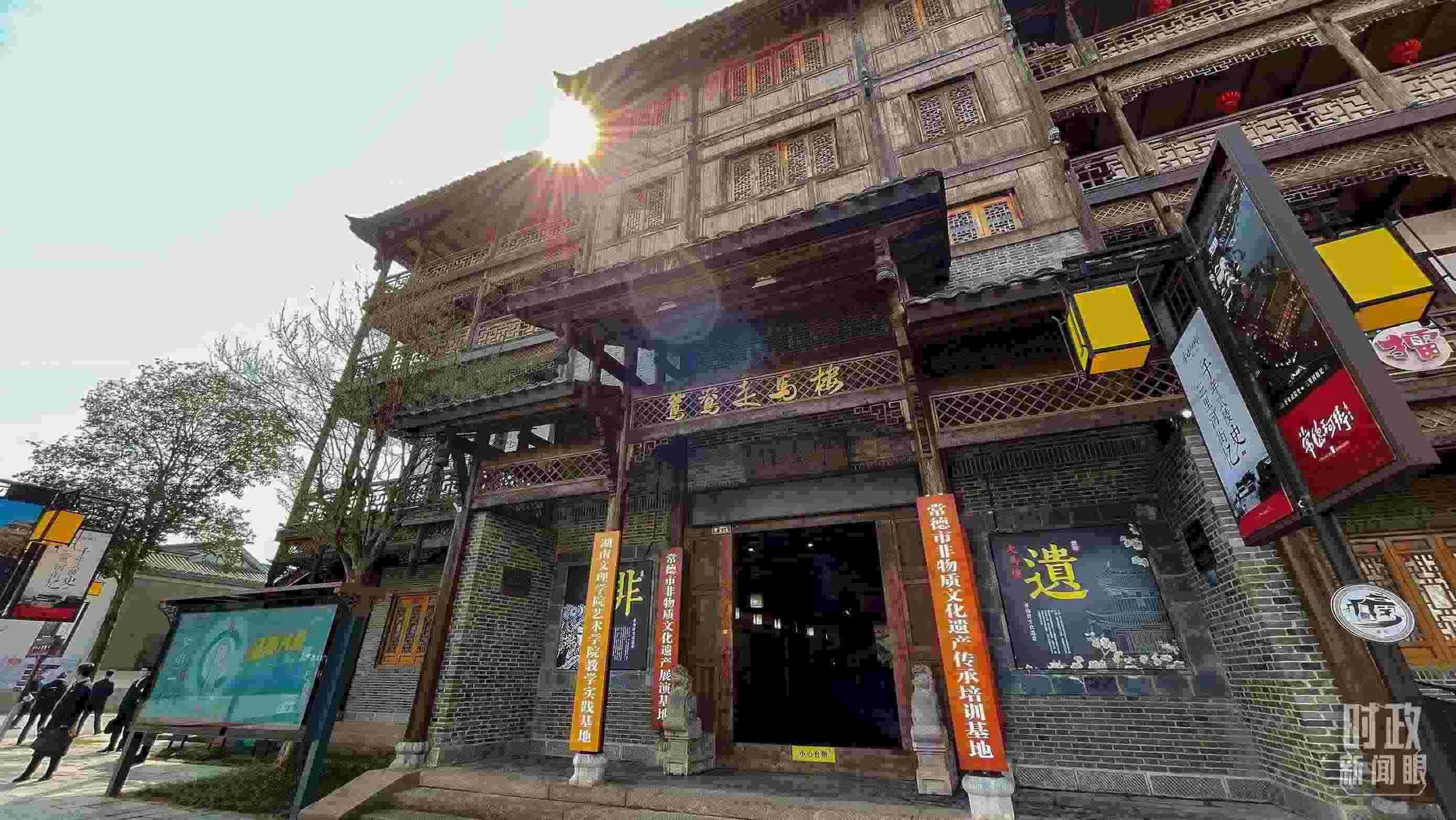 △常德河街鴛鴦走馬樓內的常德高腔、常德木雕等非遺展示。(總臺央視記者郭鴻、央廣記者潘毅拍攝)