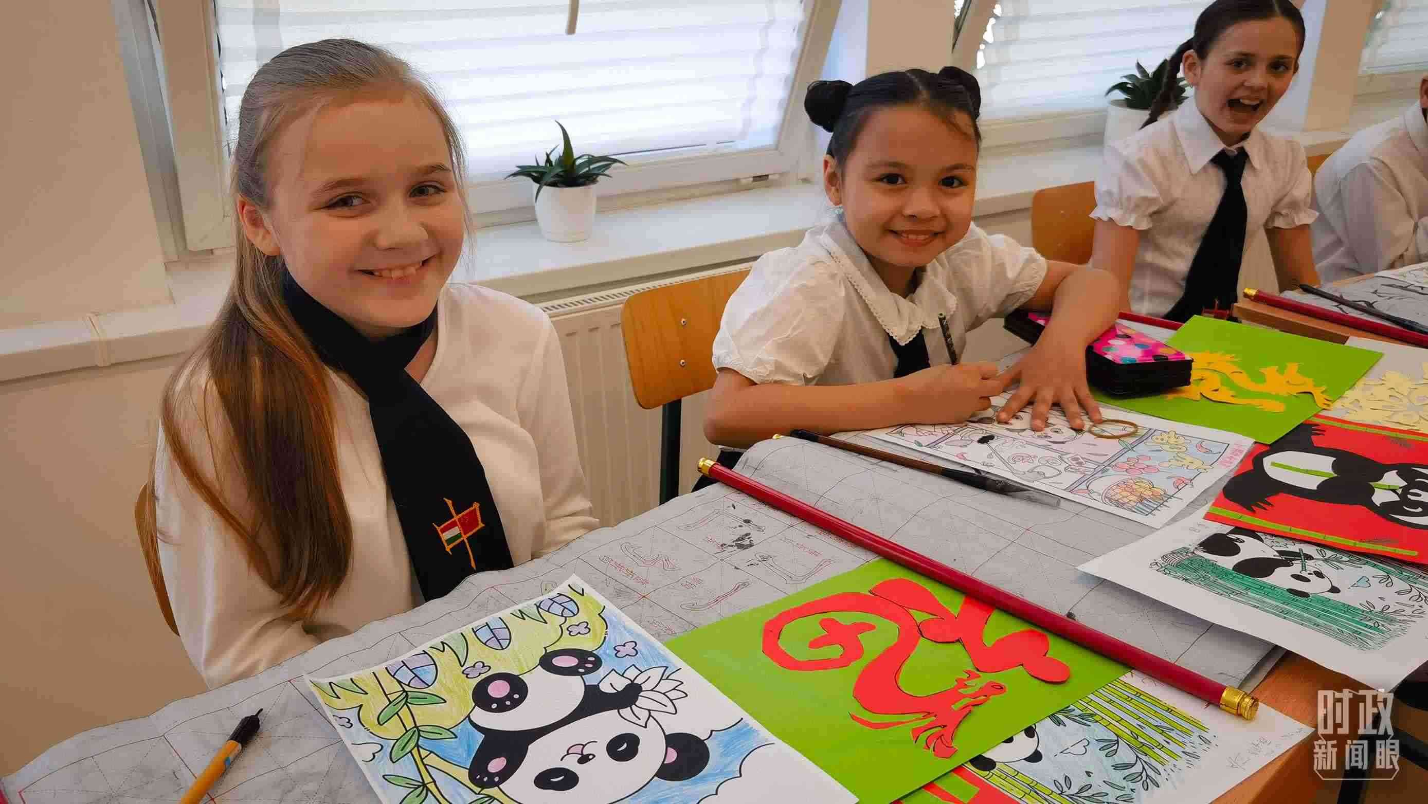 △匈中雙語學(xué)校中國傳統(tǒng)文化課堂上的孩子們。(總臺(tái)央視記者凌楓拍攝)