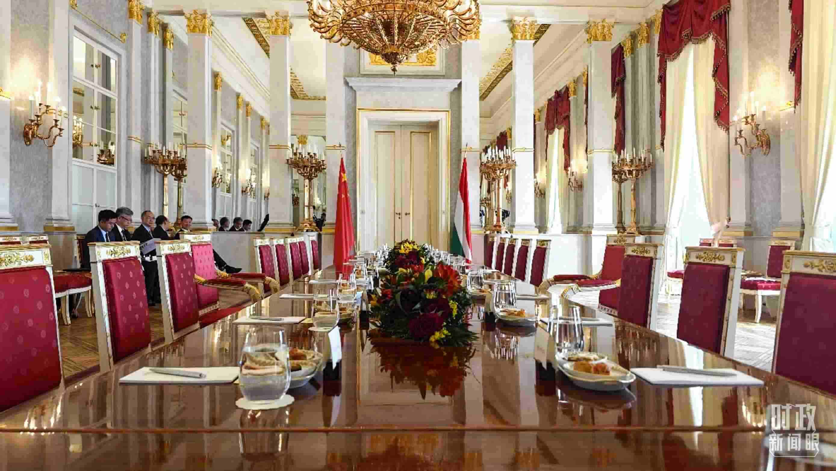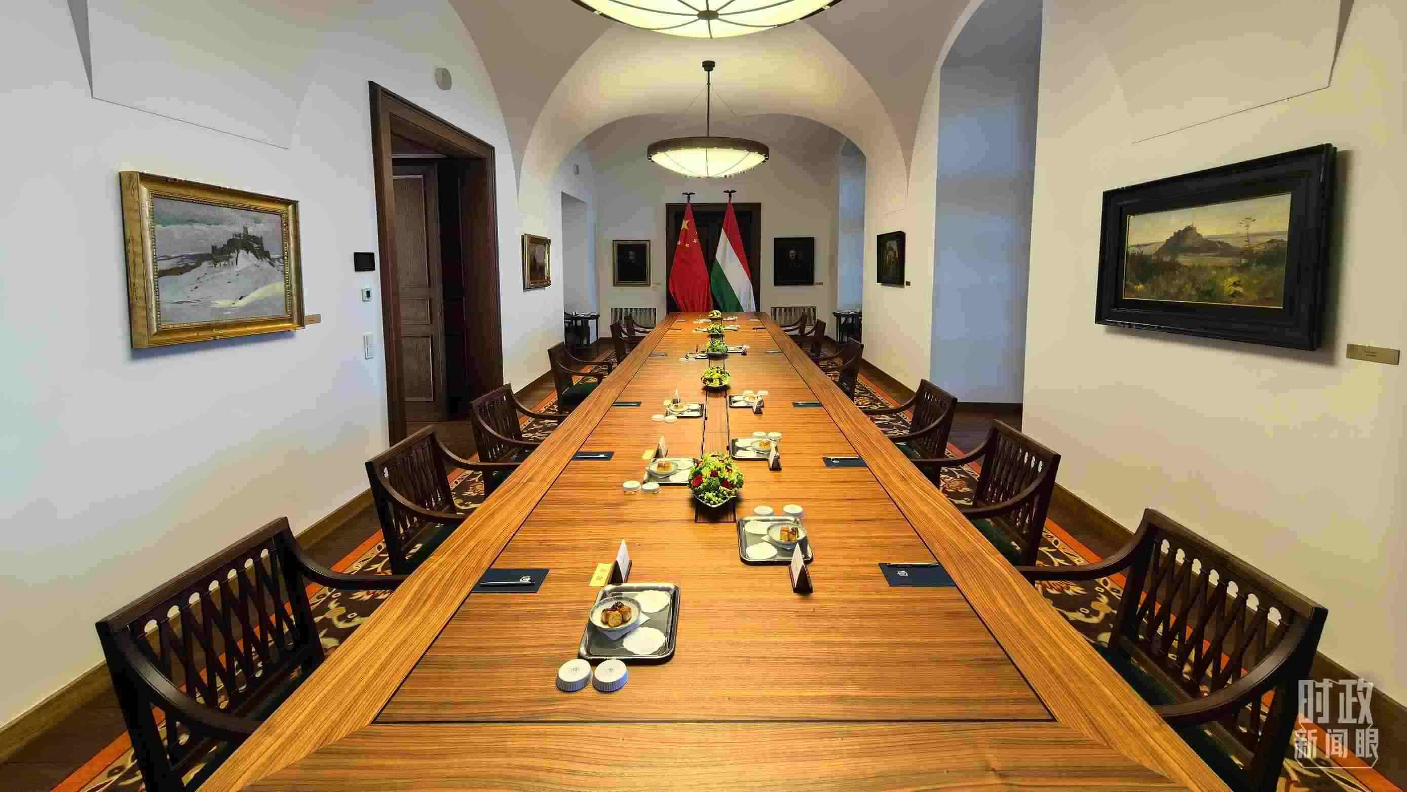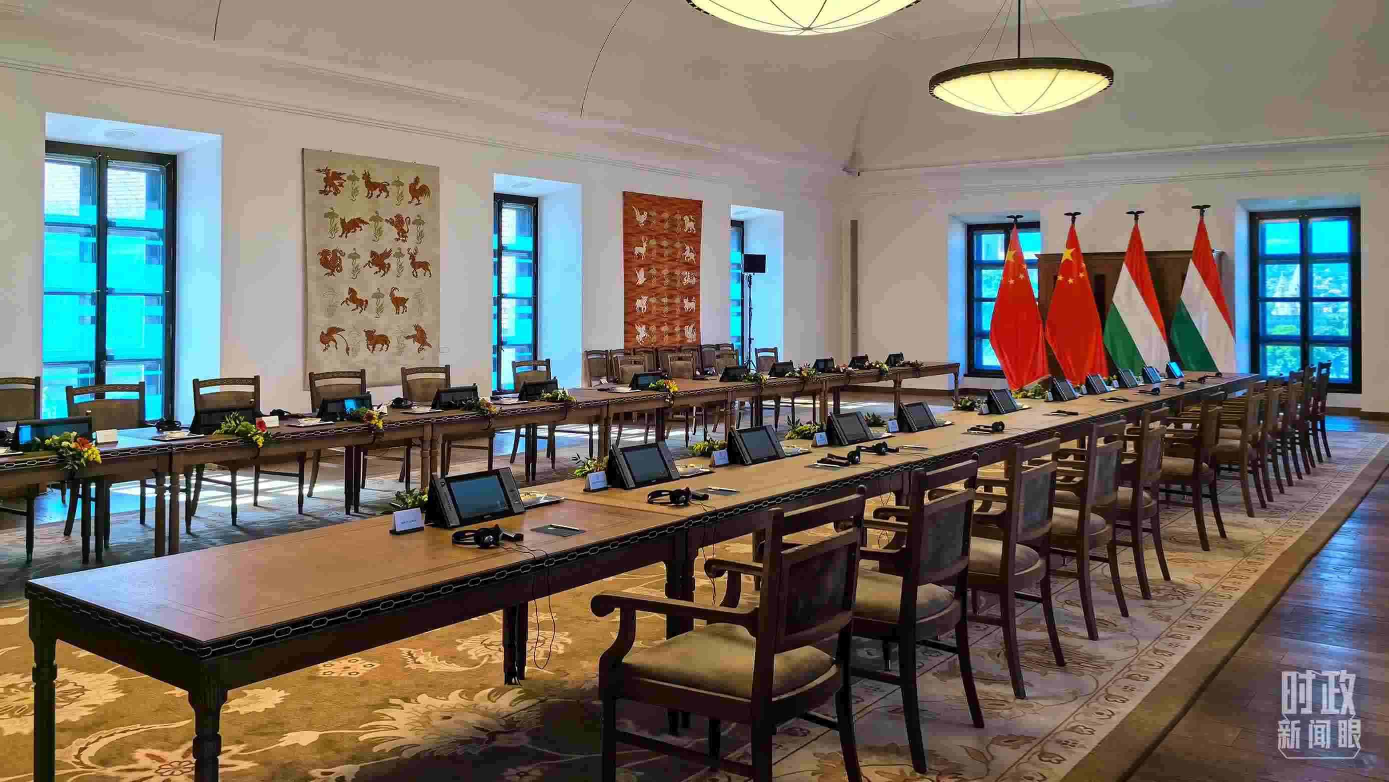 △習(xí)主席和歐爾班總理在這里舉行大范圍會(huì)談。這是會(huì)談開始前的現(xiàn)場。(總臺(tái)央視記者陸泓宇拍攝)