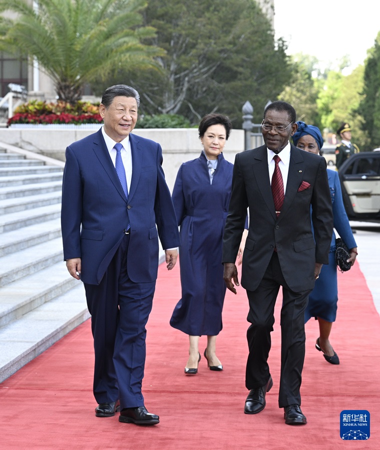 ??新華社北京5月28日電(記者孫奕、王賓)5月28日下午,國(guó)家主席習(xí)近平在北京人民大會(huì)堂同來華進(jìn)行國(guó)事訪問的赤道幾內(nèi)亞總統(tǒng)奧比昂舉行會(huì)談。兩國(guó)元首宣布,將中赤幾關(guān)系提升為全面戰(zhàn)略合作伙伴關(guān)系。 ??5月28日下午,國(guó)家主席習(xí)近平在北京人民大會(huì)堂同來華進(jìn)行國(guó)事訪問的赤道幾內(nèi)亞總統(tǒng)奧比昂舉行會(huì)談。這是會(huì)談前,習(xí)近平在人民大會(huì)堂東門外廣場(chǎng)為奧比昂舉行歡迎儀式。新華社記者 姚大偉 攝 ??5月28日下午,國(guó)家主席習(xí)近平在北京人民大會(huì)堂同來華進(jìn)行國(guó)事訪問的赤道幾內(nèi)亞總統(tǒng)奧比昂舉行會(huì)談。這是會(huì)談前,習(xí)近平和夫人彭麗媛同奧比昂和夫人康斯坦西婭合影。新華社記者 李學(xué)仁 攝 ??習(xí)近平指出,中國(guó)同赤道幾內(nèi)亞是肝膽相照的好朋友、好伙伴,高水平政治互信是兩國(guó)關(guān)系的最鮮明特征。建交半個(gè)多世紀(jì)以來,雙方始終守望相助、風(fēng)雨同舟,在涉及彼此核心利益和重大關(guān)切問題上堅(jiān)定相互支持,成為中國(guó)同非洲國(guó)家真誠(chéng)友好、攜手發(fā)展的生動(dòng)寫照。新形勢(shì)下,鞏固好、發(fā)展好中國(guó)同赤道幾內(nèi)亞關(guān)系符合兩國(guó)和兩國(guó)人民的根本利益和共同期待。中方堅(jiān)定支持赤道幾內(nèi)亞維護(hù)國(guó)家主權(quán)獨(dú)立、反對(duì)外來干涉、自主探索本國(guó)發(fā)展道路,愿同赤道幾內(nèi)亞以提升全面戰(zhàn)略合作伙伴關(guān)系為契機(jī),進(jìn)一步密切各領(lǐng)域、各層級(jí)友好往來,深入開展改革發(fā)展、脫貧攻堅(jiān)等領(lǐng)域經(jīng)驗(yàn)交流,為兩國(guó)傳統(tǒng)友好注入持久動(dòng)力。 ??習(xí)近平指出,中方支持赤道幾內(nèi)亞經(jīng)濟(jì)社會(huì)發(fā)展,支持赤幾推進(jìn)經(jīng)濟(jì)多元化和工業(yè)化的努力,愿將中非合作論壇成果、共建“一帶一路”合作同赤道幾內(nèi)亞《2035國(guó)家經(jīng)濟(jì)與社會(huì)發(fā)展規(guī)劃》緊密對(duì)接,推動(dòng)各領(lǐng)域合作提質(zhì)增效。中方鼓勵(lì)有實(shí)力的中國(guó)企業(yè)赴赤道幾內(nèi)亞投資興業(yè),愿同赤幾分享農(nóng)業(yè)農(nóng)村領(lǐng)域發(fā)展經(jīng)驗(yàn),繼續(xù)開展農(nóng)業(yè)技術(shù)援助項(xiàng)目,充分發(fā)揮中國(guó)醫(yī)療隊(duì)、中國(guó)-赤道幾內(nèi)亞友好醫(yī)院等作用,深化醫(yī)療衛(wèi)生、教育、文化等領(lǐng)域交流合作,讓兩國(guó)傳統(tǒng)友誼薪火相傳,更好造福兩國(guó)人民。 ??習(xí)近平強(qiáng)調(diào),當(dāng)今世界變亂交織,百年變局加速演進(jìn),人類社會(huì)面臨前所未有的挑戰(zhàn),發(fā)展中國(guó)家比以往任何時(shí)候都更需要加強(qiáng)團(tuán)結(jié)合作。中方愿同赤道幾內(nèi)亞等廣大發(fā)展中國(guó)家一道,弘揚(yáng)和平共處五項(xiàng)原則精神,在國(guó)際事務(wù)中加強(qiáng)協(xié)調(diào)配合,維護(hù)發(fā)展中國(guó)家共同利益和國(guó)際公平正義,推動(dòng)構(gòu)建人類命運(yùn)共同體。發(fā)展同非洲國(guó)家團(tuán)結(jié)合作是中國(guó)外交政策的重要基石。中方愿同非方開好新一屆中非合作論壇峰會(huì),進(jìn)一步弘揚(yáng)傳統(tǒng)友好,深化團(tuán)結(jié)協(xié)作,共商未來發(fā)展合作大計(jì),開啟構(gòu)建中非命運(yùn)共同體的新篇章。 ??5月28日下午,國(guó)家主席習(xí)近平在北京人民大會(huì)堂同來華進(jìn)行國(guó)事訪問的赤道幾內(nèi)亞總統(tǒng)奧比昂舉行會(huì)談。新華社記者 張領(lǐng) 攝 ??奧比昂表示,中國(guó)是偉大的東方國(guó)家,是赤道幾內(nèi)亞的好兄弟和可靠戰(zhàn)略伙伴。兩國(guó)建交54年來,雙邊關(guān)系始終保持友好發(fā)展,目前處于歷史最好時(shí)期。中國(guó)同赤幾的合作始終基于平等和相互尊重,從不強(qiáng)加于人。中國(guó)援非醫(yī)療隊(duì)、幫助修建的中赤幾友好醫(yī)院等重要項(xiàng)目,造福了當(dāng)?shù)厝嗣?,成為非中友好的象征。赤幾愿向中?guó)敞開大門,歡迎中國(guó)企業(yè)赴赤幾投資合作,助力赤幾實(shí)現(xiàn)經(jīng)濟(jì)多元化和工業(yè)化,實(shí)現(xiàn)國(guó)家持久健康發(fā)展。習(xí)近平主席提出的構(gòu)建人類命運(yùn)共同體理念以及共建“一帶一路”、全球發(fā)展倡議、全球安全倡議和全球文明倡議,有利于推動(dòng)人類和平進(jìn)步,打造更加美好的世界。赤幾高度評(píng)價(jià)中方為推動(dòng)政治解決地區(qū)熱點(diǎn)問題、促進(jìn)世界和平與發(fā)展所作積極努力,愿同中方加強(qiáng)在中非合作論壇、金磚國(guó)家等框架內(nèi)合作,推動(dòng)全球治理體系朝著更加公平合理的方向發(fā)展。赤幾堅(jiān)定奉行一個(gè)中國(guó)原則,認(rèn)為世界上只有一個(gè)中國(guó),臺(tái)灣是中國(guó)領(lǐng)土不可分割的一部分,中華人民共和國(guó)政府是代表全中國(guó)的唯一合法政府,反對(duì)任何形式的“臺(tái)獨(dú)”,堅(jiān)定支持中國(guó)政府為實(shí)現(xiàn)國(guó)家完全統(tǒng)一所作的努力。 ??會(huì)談后,兩國(guó)元首共同見證簽署關(guān)于投資、經(jīng)濟(jì)