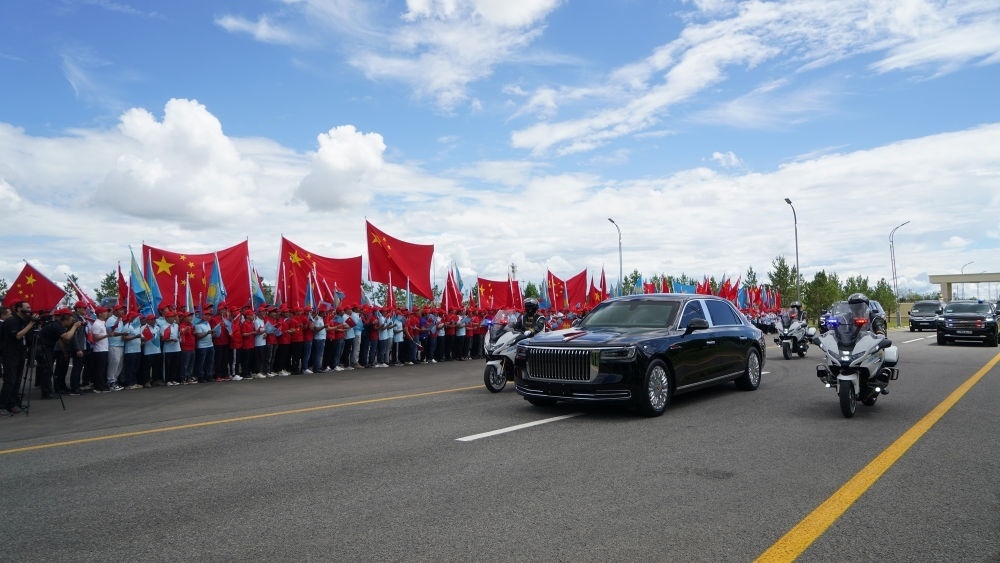 7月2日,國(guó)家主席習(xí)近平抵達(dá)阿斯塔納,出席上海合作組織成員國(guó)元首理事會(huì)第二十四次會(huì)議并對(duì)哈薩克斯坦進(jìn)行國(guó)事訪問(wèn)。哈薩克斯坦總統(tǒng)托卡耶夫親自到機(jī)場(chǎng)迎接。