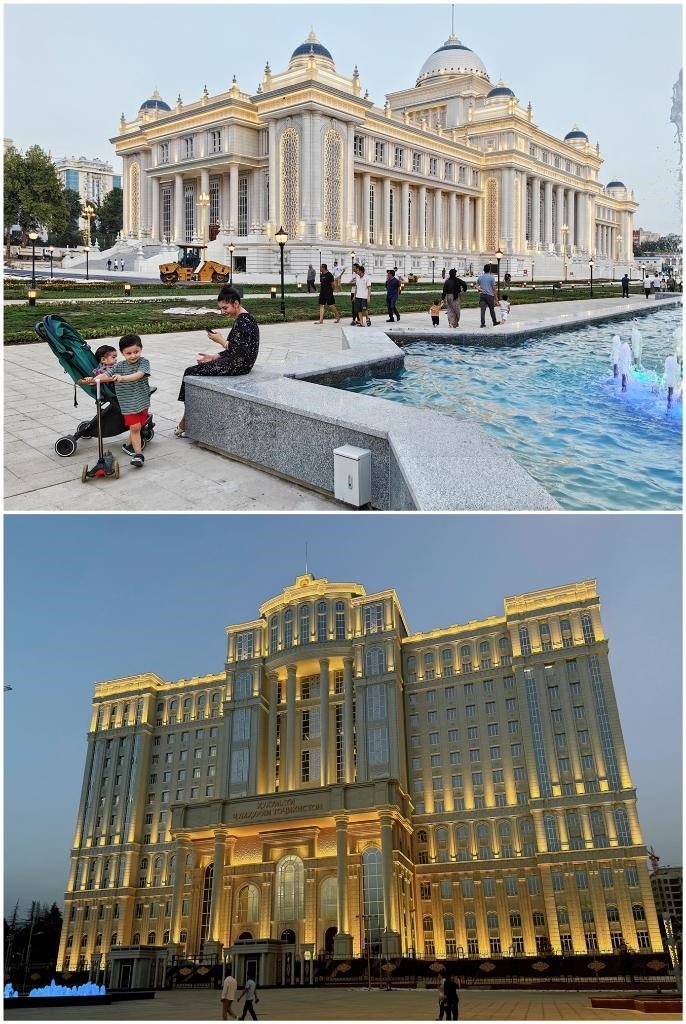 塔議會大樓、政府大樓坐落于杜尚別著名的魯達基大道,相隔數(shù)百米。議會大樓同總統(tǒng)府相望,政府大樓則俯瞰杜尚別另一條交通干道——索莫尼大道。兩座大樓融合歐亞古典柱廊結(jié)構(gòu)、塔吉克民族特色雕刻、伊斯蘭文化風(fēng)格的設(shè)計,外觀大氣、典雅莊重,同魯達基大道兩側(cè)的古樹、鮮花、噴泉相映成景。