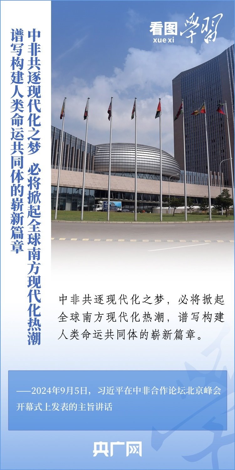 “中非共逐現(xiàn)代化之夢(mèng),必將掀起全球南方現(xiàn)代化熱潮,譜寫構(gòu)建人類命運(yùn)共同體的嶄新篇章?!绷?xí)近平主席表示,中非關(guān)系正處于歷史最好時(shí)期,中非將攜手推進(jìn)六個(gè)現(xiàn)代化,并推動(dòng)實(shí)施“十大伙伴行動(dòng)”。一起來(lái)學(xué)習(xí)!