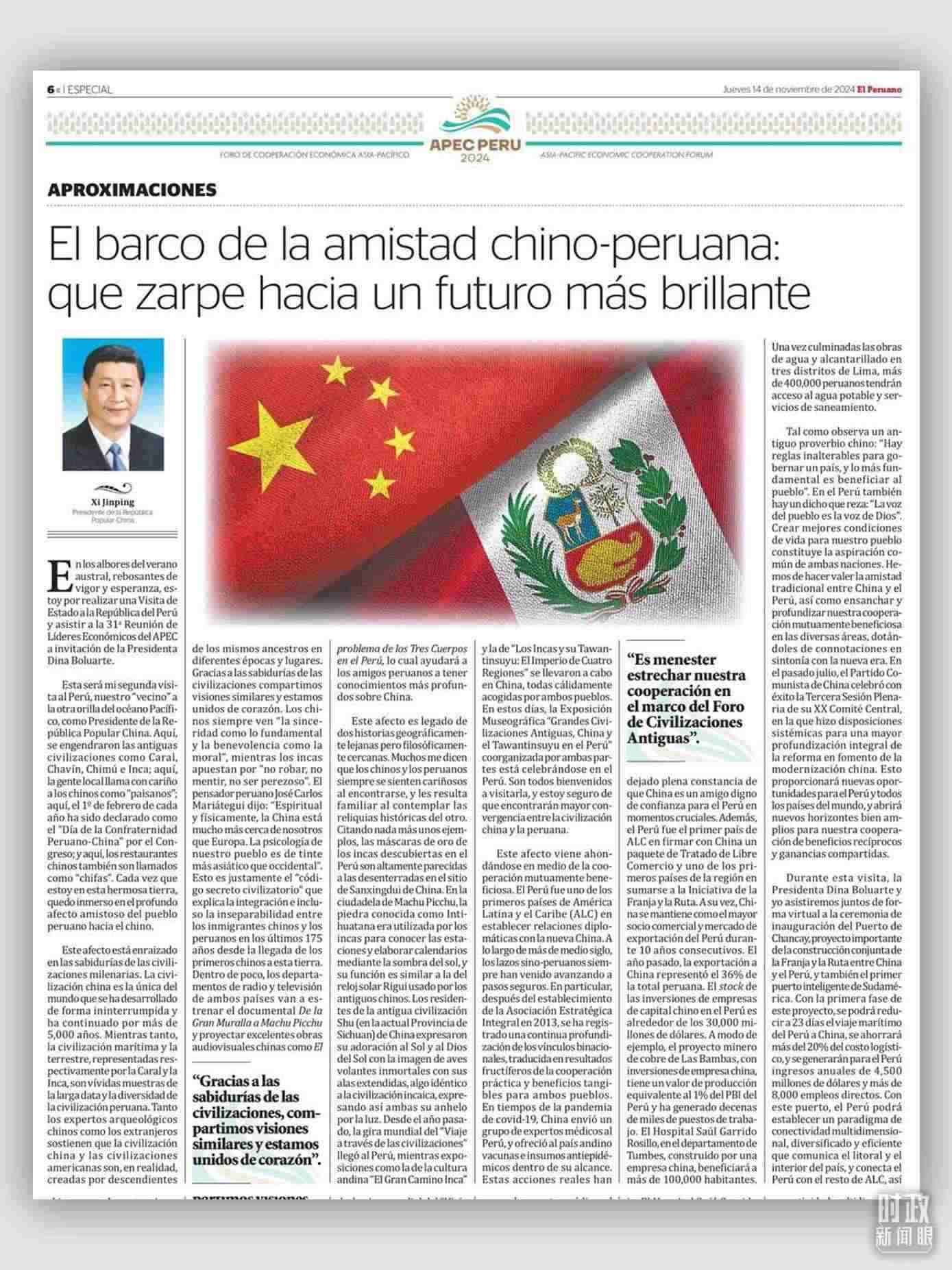 14日,習(xí)主席在秘魯媒體發(fā)表的署名文章中說(shuō),“每次來(lái)到秘魯,我都深深感受到秘魯人民對(duì)中國(guó)人民的友好情誼?!?/p>