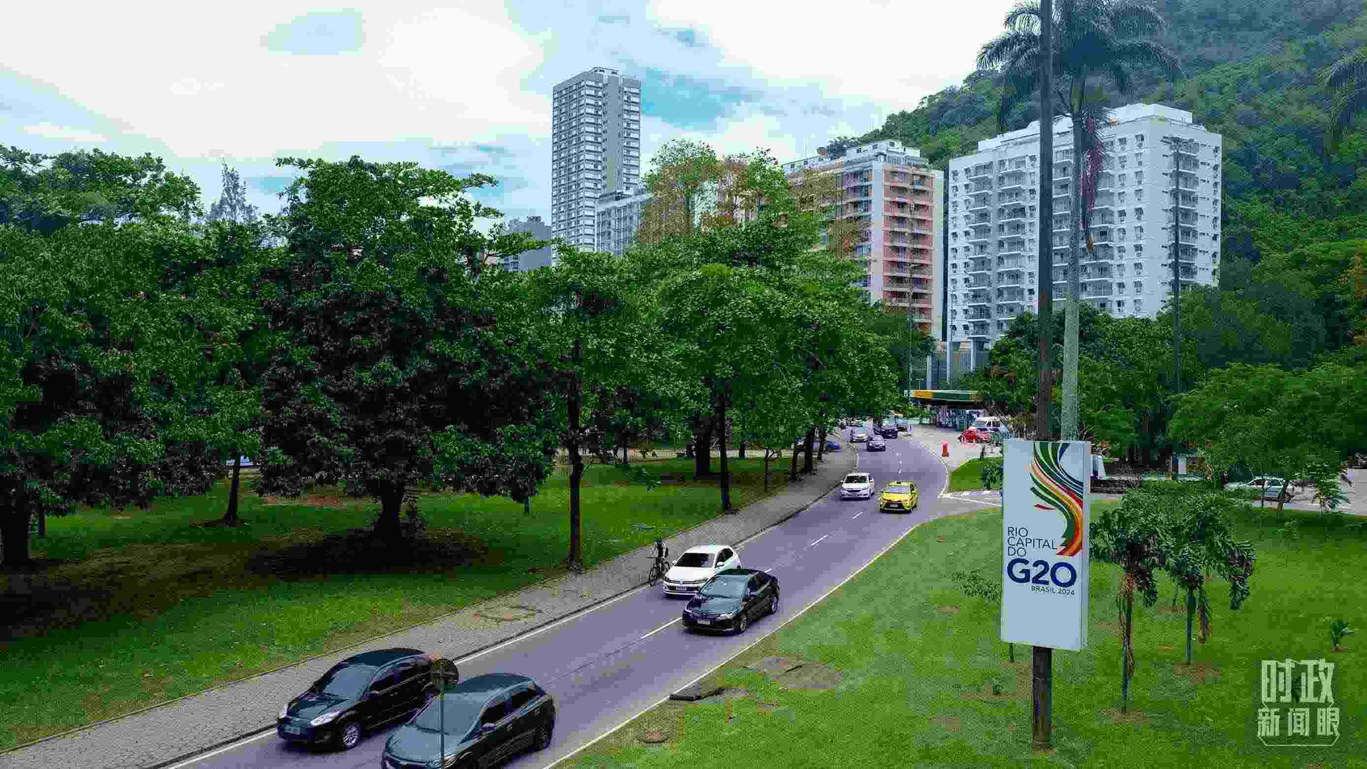 △巴西里約熱內(nèi)盧街頭的G20標(biāo)識。(總臺央視記者曹亞星拍攝)