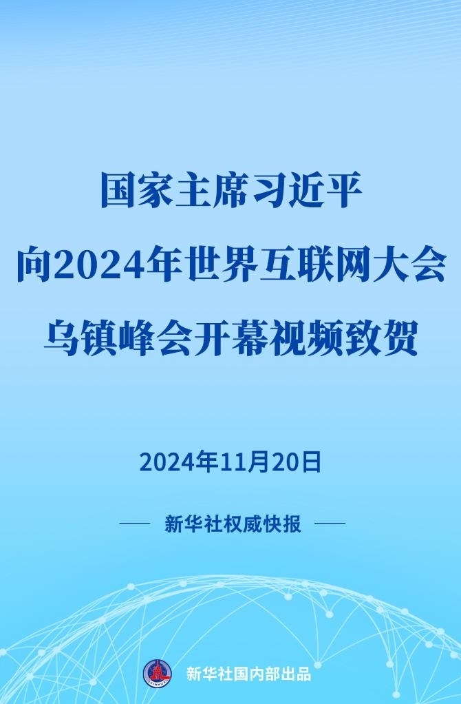 11月20日,國家主席習(xí)近平向2024年世界互聯(lián)網(wǎng)大會烏鎮(zhèn)峰會開幕視頻致賀。