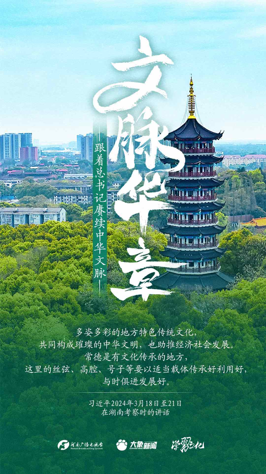 習(xí)近平總書記高度重視中華優(yōu)秀傳統(tǒng)文化的繼承和弘揚。2024年,總書記一如既往,念茲在茲。在赴地方考察、主持召開重要會議等眾多場合,多次對傳承發(fā)展中華優(yōu)秀傳統(tǒng)文化作出重要講話重要指示。大象新聞邀您一起,跟著總書記賡續(xù)中華文脈,推動中華優(yōu)秀傳統(tǒng)文化創(chuàng)造性轉(zhuǎn)化和創(chuàng)新性發(fā)展,在新的起點上繼續(xù)推動文化繁榮、建設(shè)文化強(qiáng)國、建設(shè)中華民族現(xiàn)代文明。