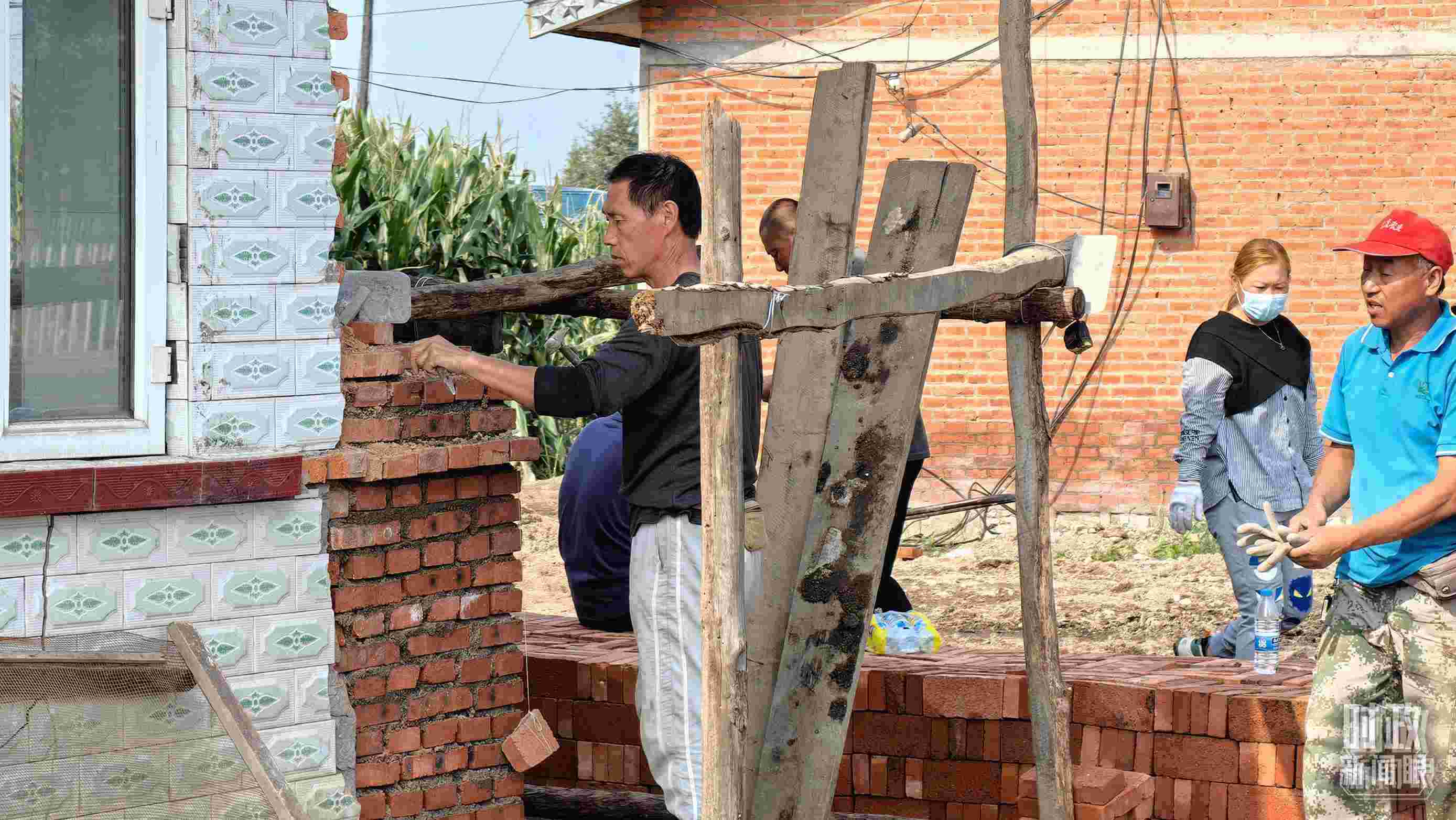 △2023年9月,黑龍江龍王廟村村民在修繕在洪水中受損的房屋。(總臺(tái)央廣記者潘毅拍攝)