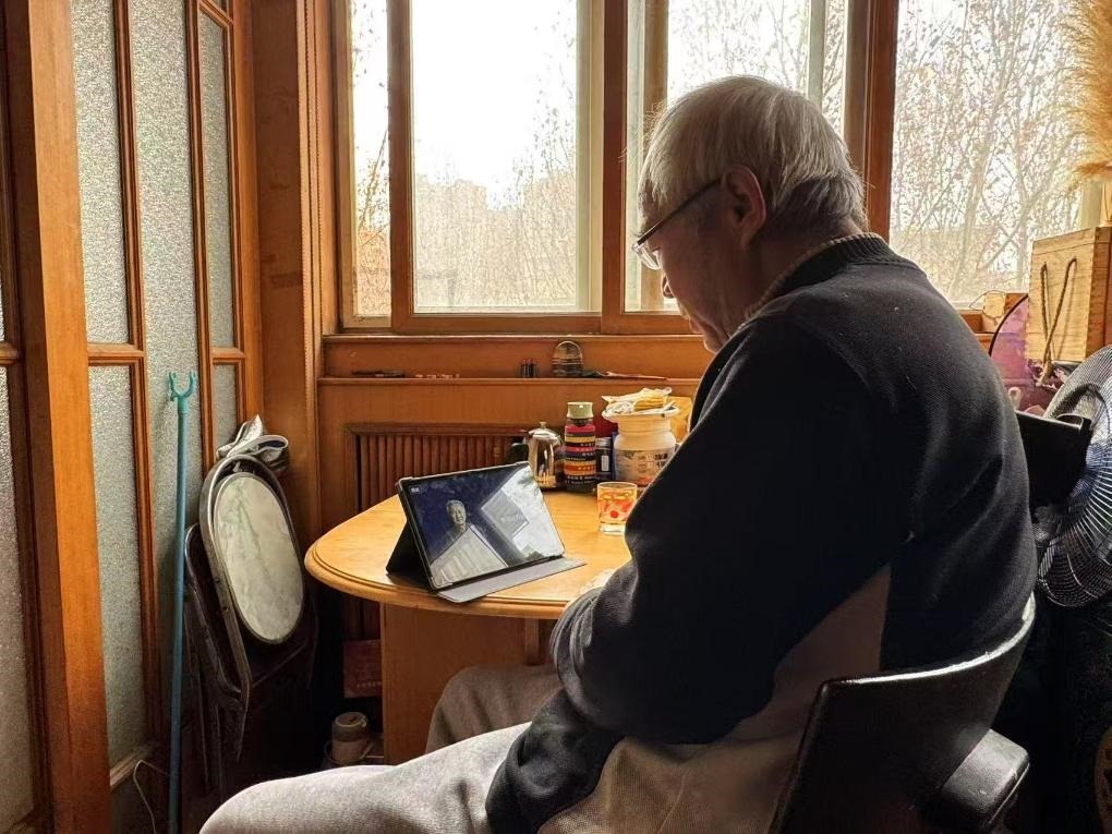 2025年1月26日,天津市南開(kāi)區(qū)的老人崔金海正在同小云健康陪伴智能機(jī)中的虛擬“同伴”聊天。新華社記者 梁姊 攝