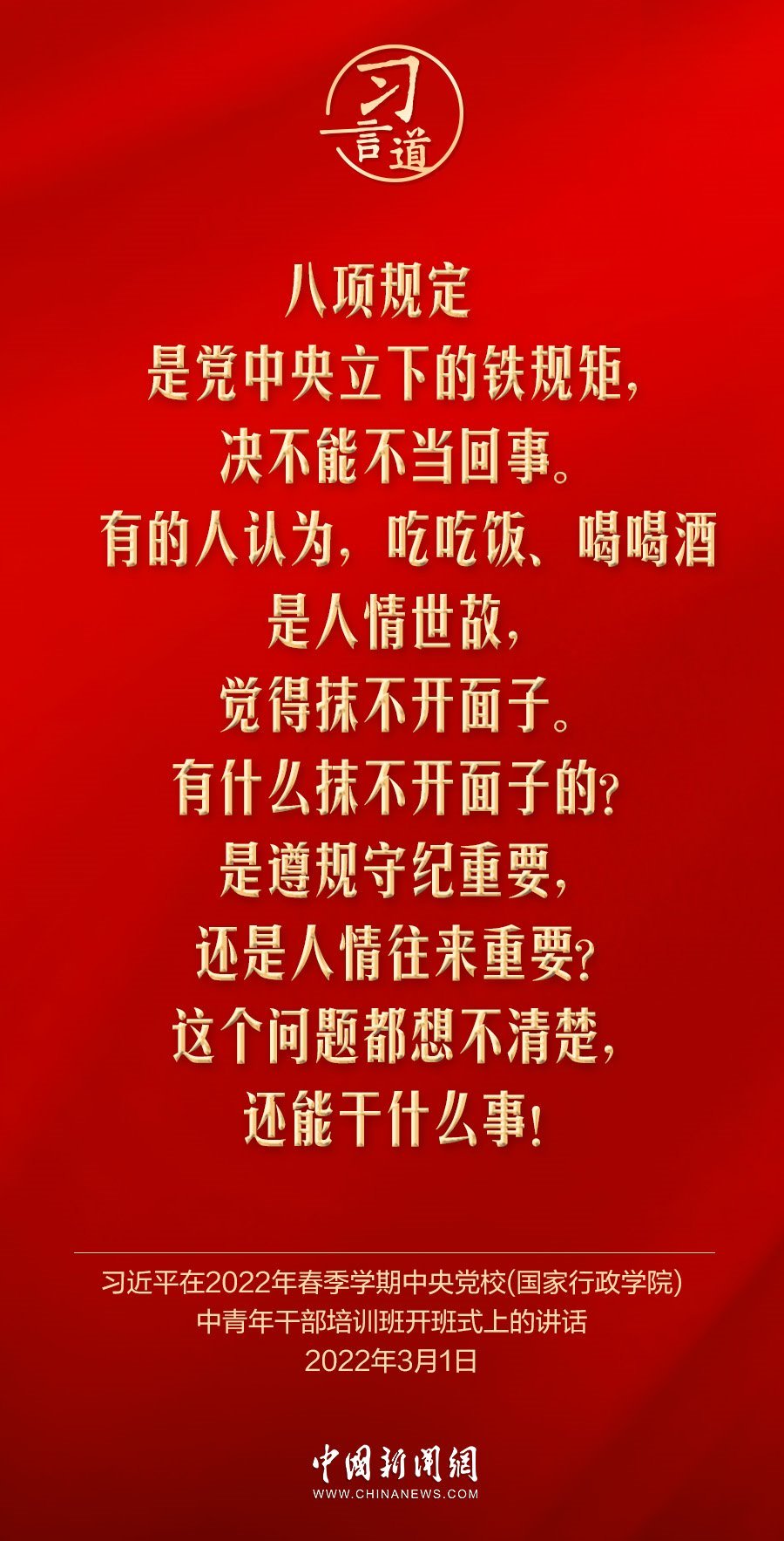 黨中央決定,自2025年全國(guó)兩會(huì)后至7月在全黨開展深入貫徹中央八項(xiàng)規(guī)定精神學(xué)習(xí)教育。黨的作風(fēng)就是黨的形象,關(guān)系人心向背,決定黨和國(guó)家事業(yè)成敗。習(xí)近平總書記高度重視作風(fēng)建設(shè),就貫徹落實(shí)中央八項(xiàng)規(guī)定精神、深化作風(fēng)建設(shè)作出一系列重要論述——