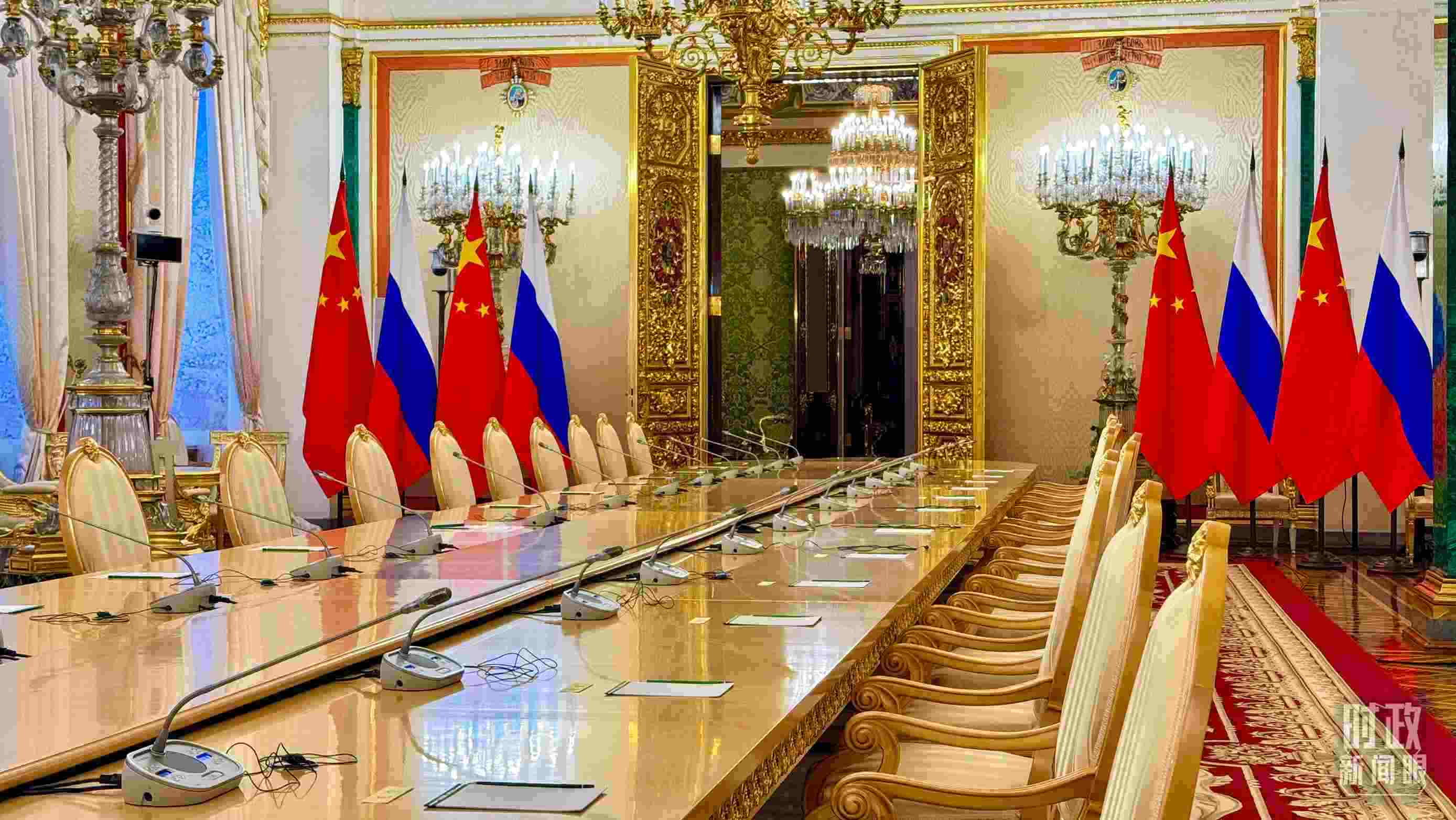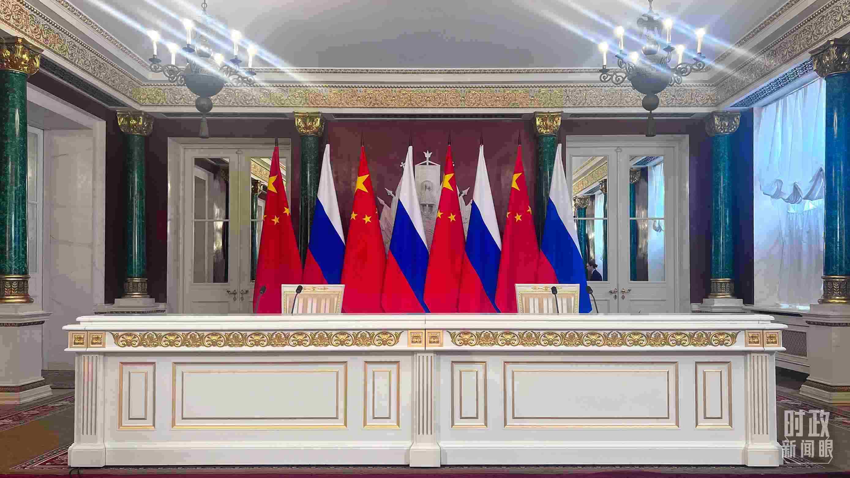 △習主席和普京總統(tǒng)舉行大范圍會談的會場。(總臺央視記者趙東辰拍攝)