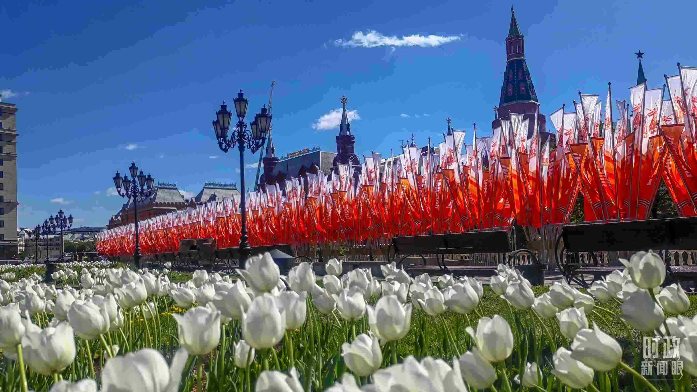 △莫斯科街頭的勝利日旗幟。(總臺(tái)央視記者楊波拍攝)
