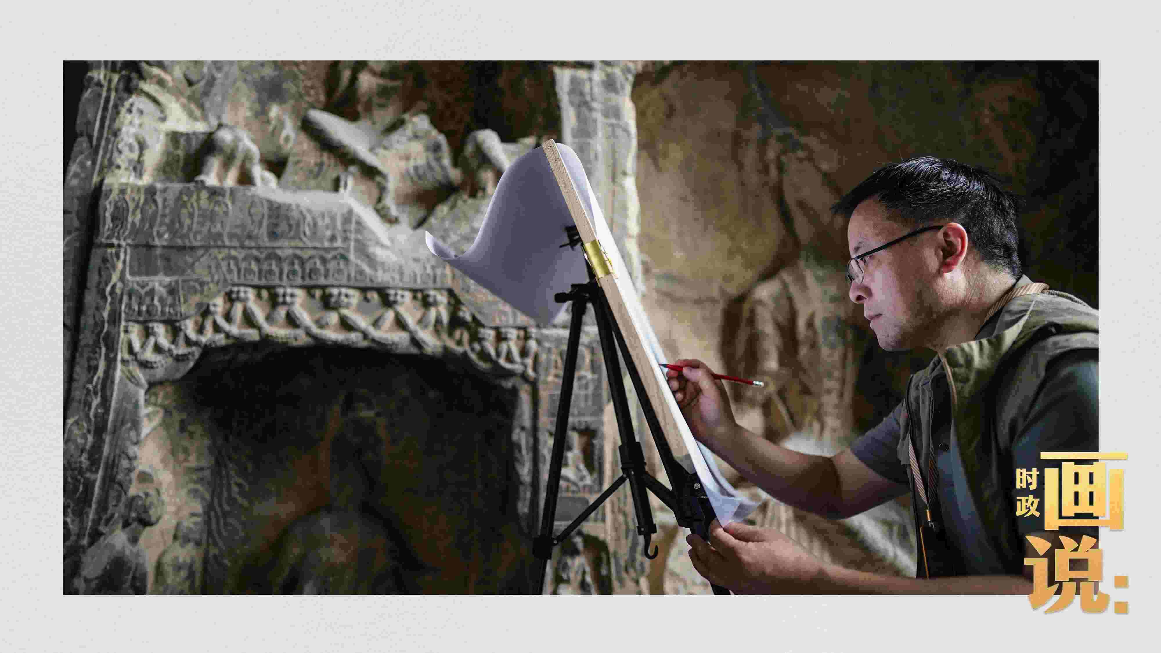 △工作人員在對石刻病害情況進行詳細(xì)記錄
