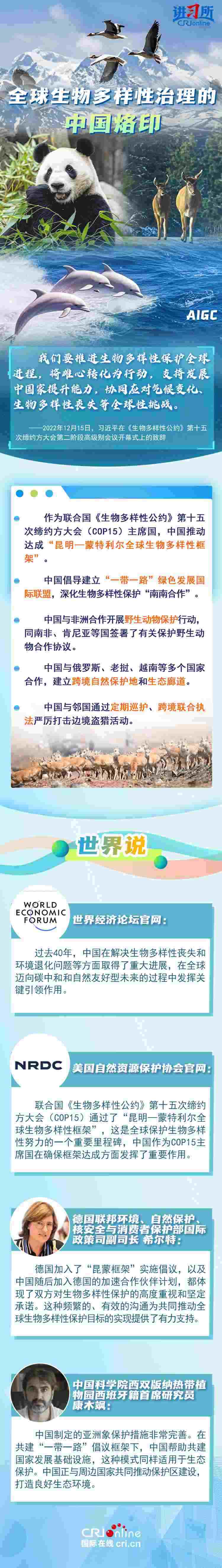 “心往一處想、勁往一處使,共建地球生命共同體?!弊鳛樽钤绾炇?、批準(zhǔn)《生物多樣性公約》的締約方之一,生物多樣性保護(hù)已經(jīng)上升為中國(guó)的國(guó)家發(fā)展戰(zhàn)略。國(guó)際人士表示,中國(guó)的一系列舉措體現(xiàn)出對(duì)生態(tài)環(huán)境保護(hù)的堅(jiān)定決心,同時(shí),中國(guó)依托共建“一帶一路”倡議等國(guó)際合作機(jī)制,為推動(dòng)全球生物多樣性保護(hù)提供了有力支持,在邁向自然友好型未來的過程中發(fā)揮關(guān)鍵的引領(lǐng)作用。