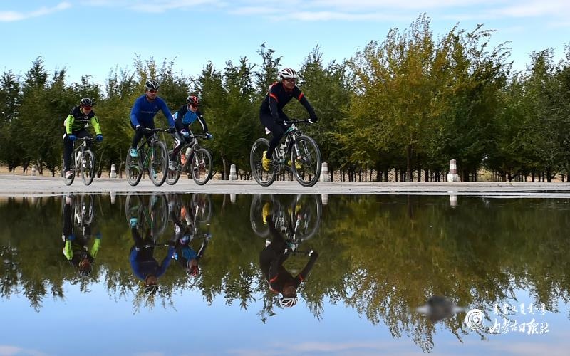 據(jù)了解,本次比賽共有來自全區(qū)各盟市共18支代表隊、200多名騎手參加,分為:城市繞圈團體計時賽,即精英組6.5公里×3圈和本地組6.5公里×2圈;環(huán)烏梁素海個人賽,即精英組男子60公里,精英組女子30公里。比賽線路設(shè)計以烏拉特前旗城市建設(shè)展示和烏梁素海秋日風(fēng)光為核心,賽手們在金色秋日中一路馳騁。