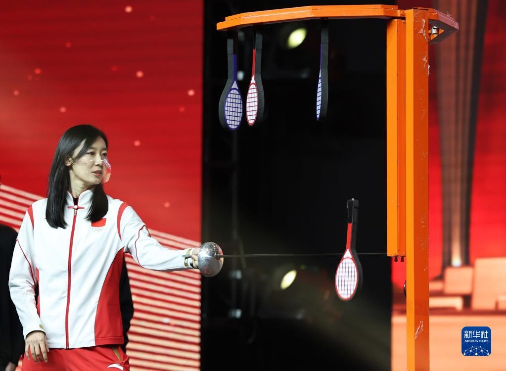 12月20日,內(nèi)地奧運(yùn)健兒代表團(tuán)成員孫一文在活動中參與游戲。