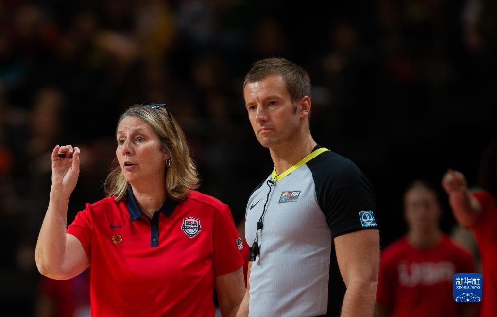 10月1日,美國隊主教練謝麗爾·里夫(左)在比賽中指揮。