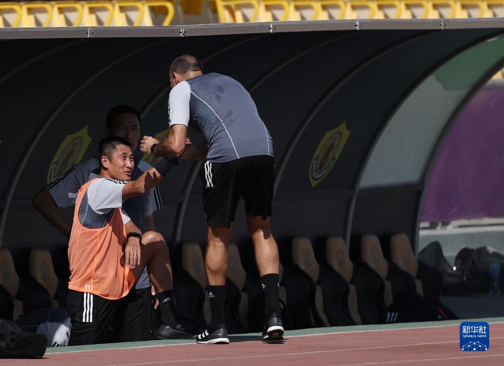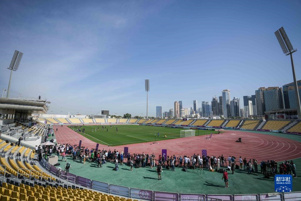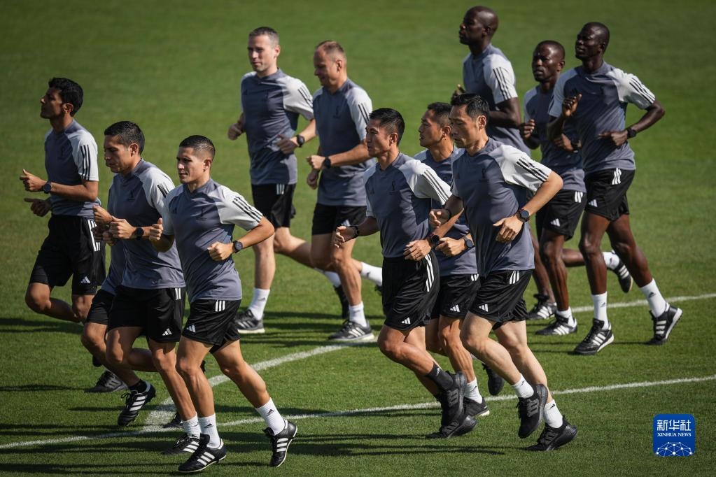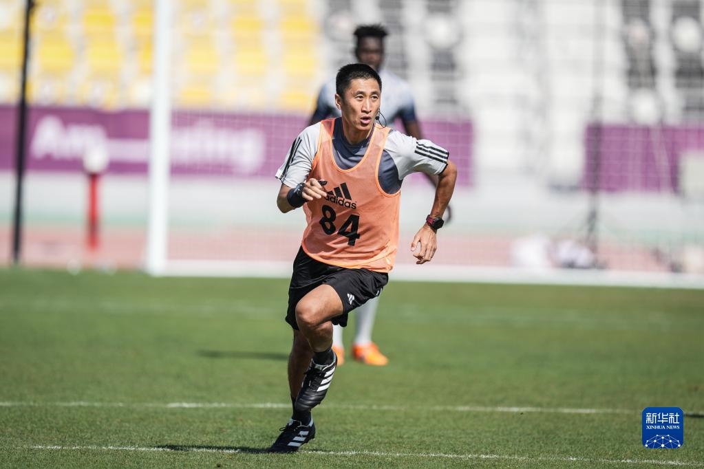 當日,入選2022年卡塔爾世界杯裁判員名單的中國裁判馬寧、曹奕與施翔在卡塔爾體育俱樂部球場進行訓練。