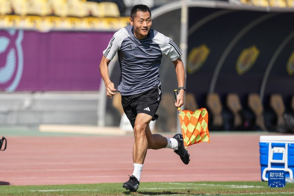 11月18日,中國裁判馬寧在訓練中。新華社記者 賈浩成 攝
