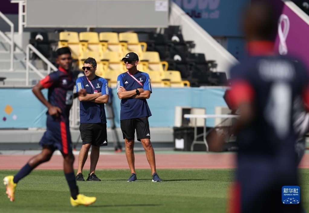 11月18日,國際足聯裁判委員會主席皮耶路易吉·科利納(下)觀看訓練。新華社記者 賈浩成 攝