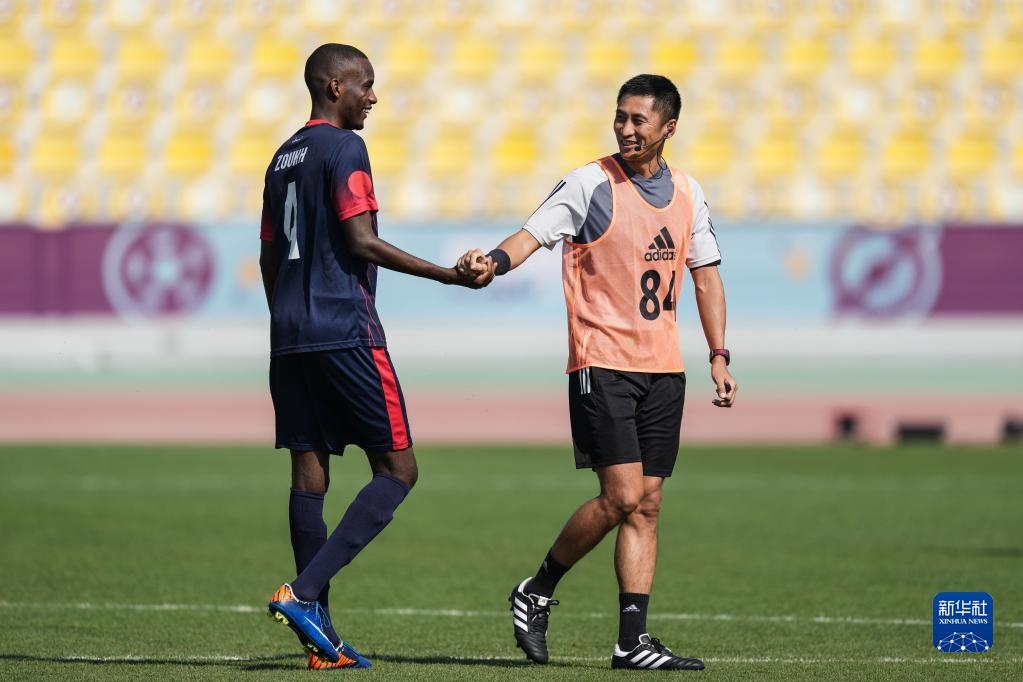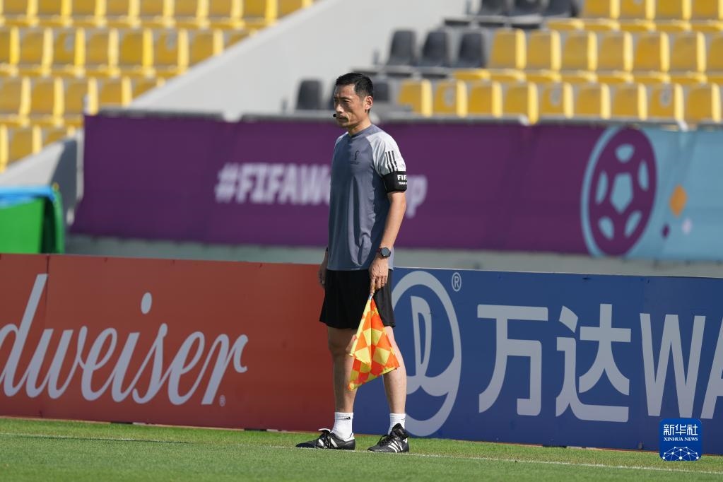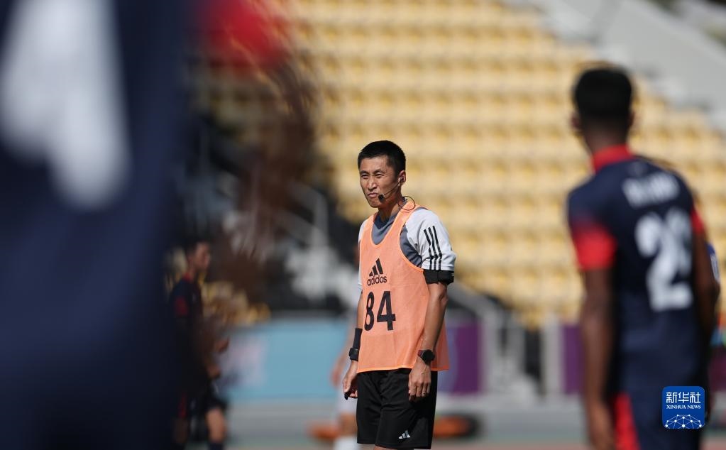 11月18日,中國裁判馬寧(右一)在訓練中。新華社記者 賈浩成 攝