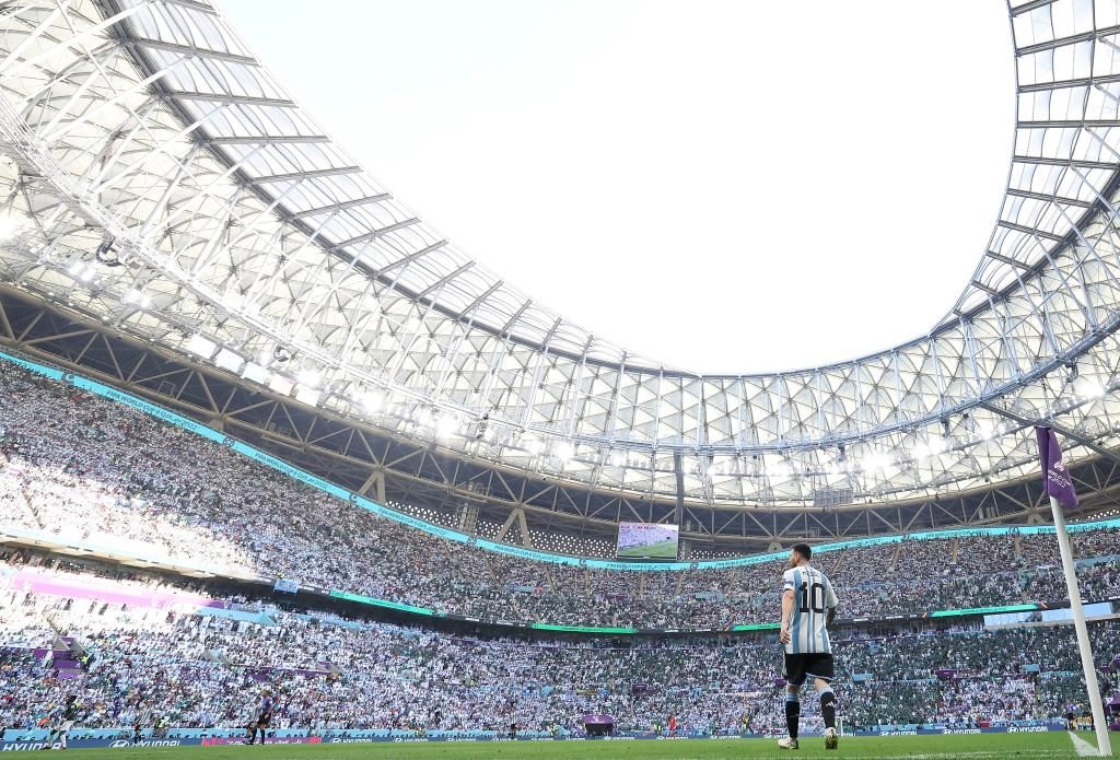 22日,盧賽爾體育場迎來了它的世界杯首場比賽,沙特隊(duì)爆冷2:1擊敗奪冠熱門阿根廷隊(duì)。賽后,沙特隊(duì)球迷法哈德·穆塔伊里激動(dòng)地說:“這座球場太棒了,能在這里贏球,是沙特隊(duì)的巨大榮耀?!?/p>