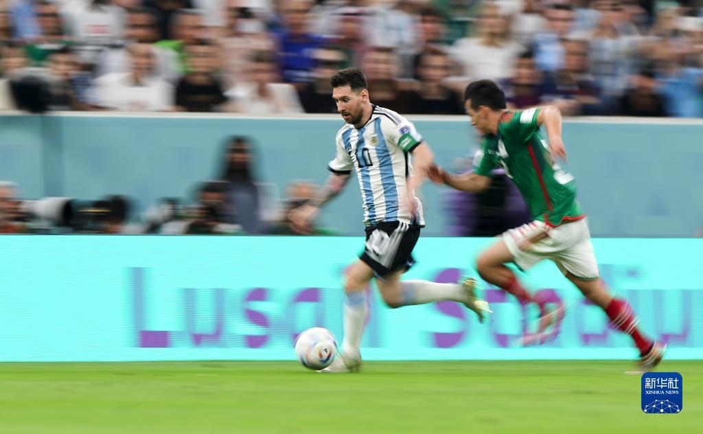 久攻不下的阿根廷人在第64分鐘終于等到了他們的英雄。梅西在禁區(qū)外接到迪瑪利亞傳球,稍做調(diào)整后左腳打出“貼地?cái)亍?,皮球躥入死角,阿根廷隊(duì)1:0領(lǐng)先。丟球后的墨西哥隊(duì)大舉壓上試圖扳平比分,后防線留下大片空當(dāng)。第87分鐘,替補(bǔ)上場的恩佐·費(fèi)爾南德斯再入一球,阿根廷隊(duì)鎖定勝局。