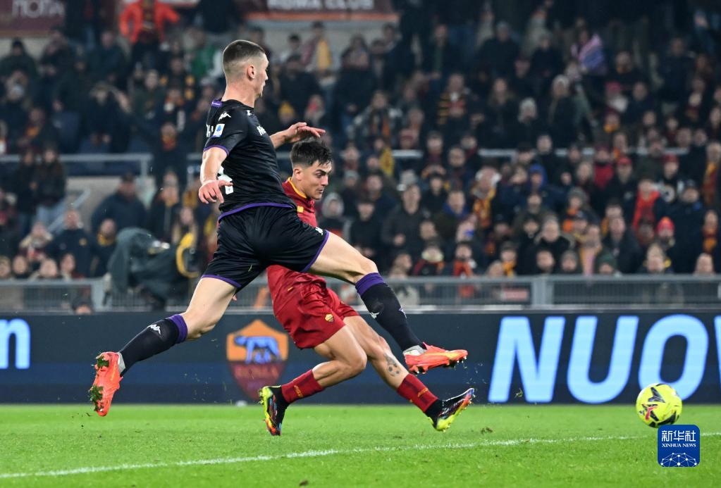 在羅馬迎戰(zhàn)佛羅倫薩的比賽中,雙方一開始勢均力敵,但第24分鐘場上風云突變,“紫百合”球員多多鏟人犯規(guī)領到第二張黃牌,被罰下場,客隊場上只剩十人。此后得以制造更多進攻機會的羅馬在第40分鐘打破僵局,迪巴拉接亞伯拉罕的回傳,凌空將球打進。易邊再戰(zhàn),佛羅倫薩換上巴拉克和岡薩雷斯,攻勢有所起色。不過羅馬在第82分鐘再度由亞伯拉罕助攻迪巴拉破門,鎖定勝局。