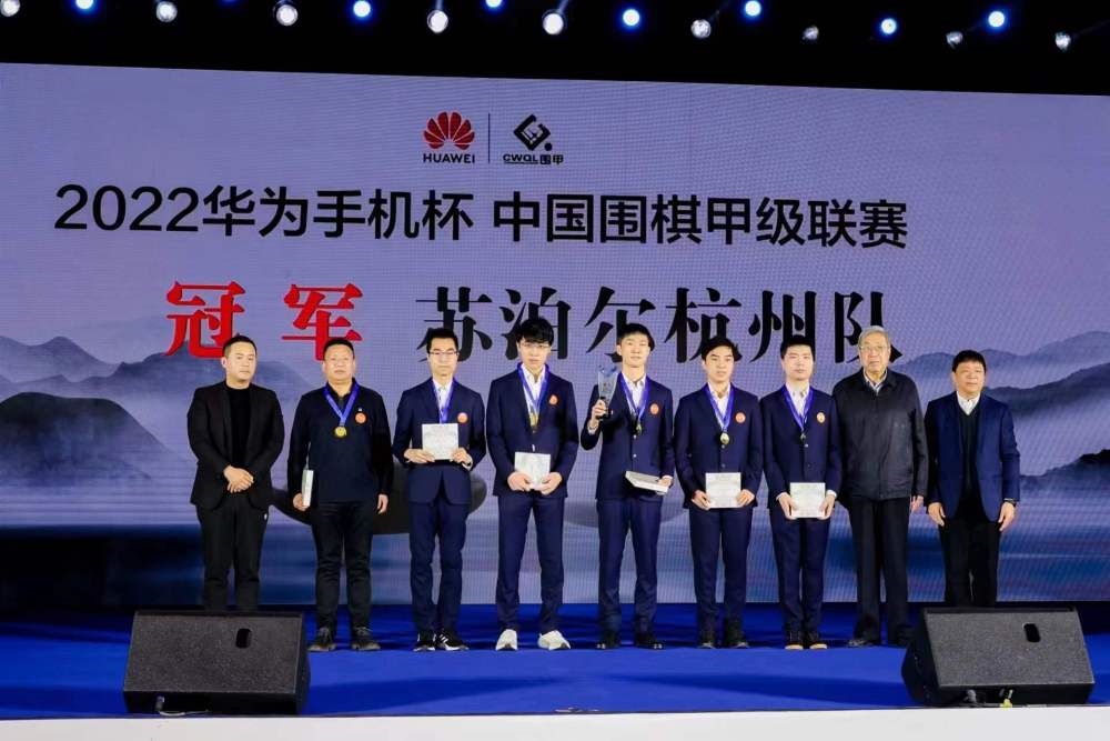 蘇泊爾杭州隊(duì)在2022華為手機(jī)杯中國圍棋甲級聯(lián)賽頒獎儀式上。