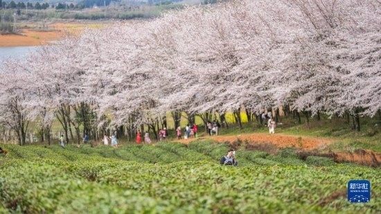 近日,貴州省貴安新區(qū)櫻花園內(nèi)的2.4萬(wàn)畝櫻花競(jìng)相綻放,如雪似霞,吸引游客前來(lái)賞花觀光。