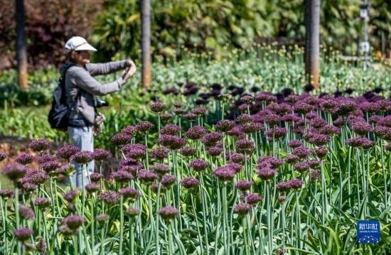 近日,昆明植物園中烏全球蔥園(昆明中心)內(nèi)的近十個(gè)品種、6000余株觀賞蔥屬植物逐漸迎來(lái)盛花期,吸引游客前來(lái)觀光。據(jù)了解,蔥屬植物具有重要的經(jīng)濟(jì)利用價(jià)值,許多種類被人類作為食用、藥用和觀賞植物進(jìn)行了長(zhǎng)期的栽培利用。