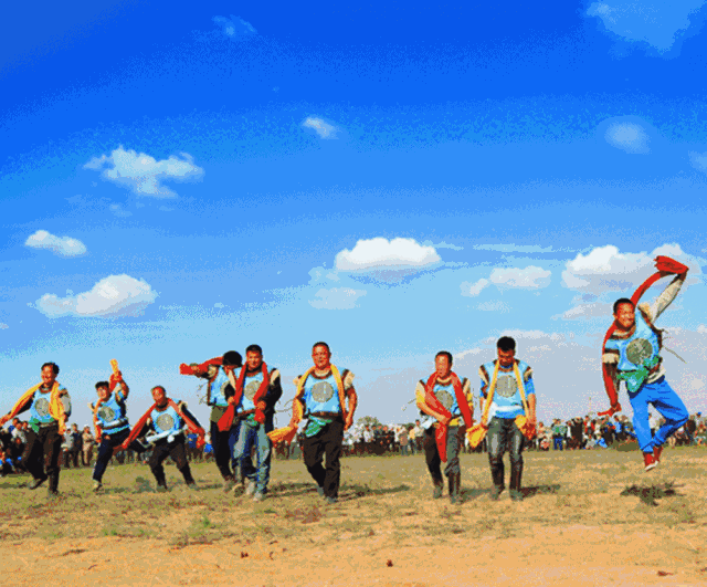 即摔跤,是蒙古族“男兒三藝”之一,屬蒙古族傳統(tǒng)體育項(xiàng)目,以錫林郭勒盟為中心分布于整個(gè)內(nèi)蒙古地區(qū)。2006年,入選第一批國(guó)家級(jí)非物質(zhì)文化遺產(chǎn)名錄。