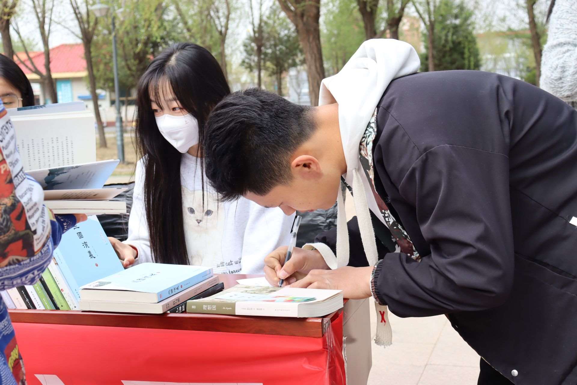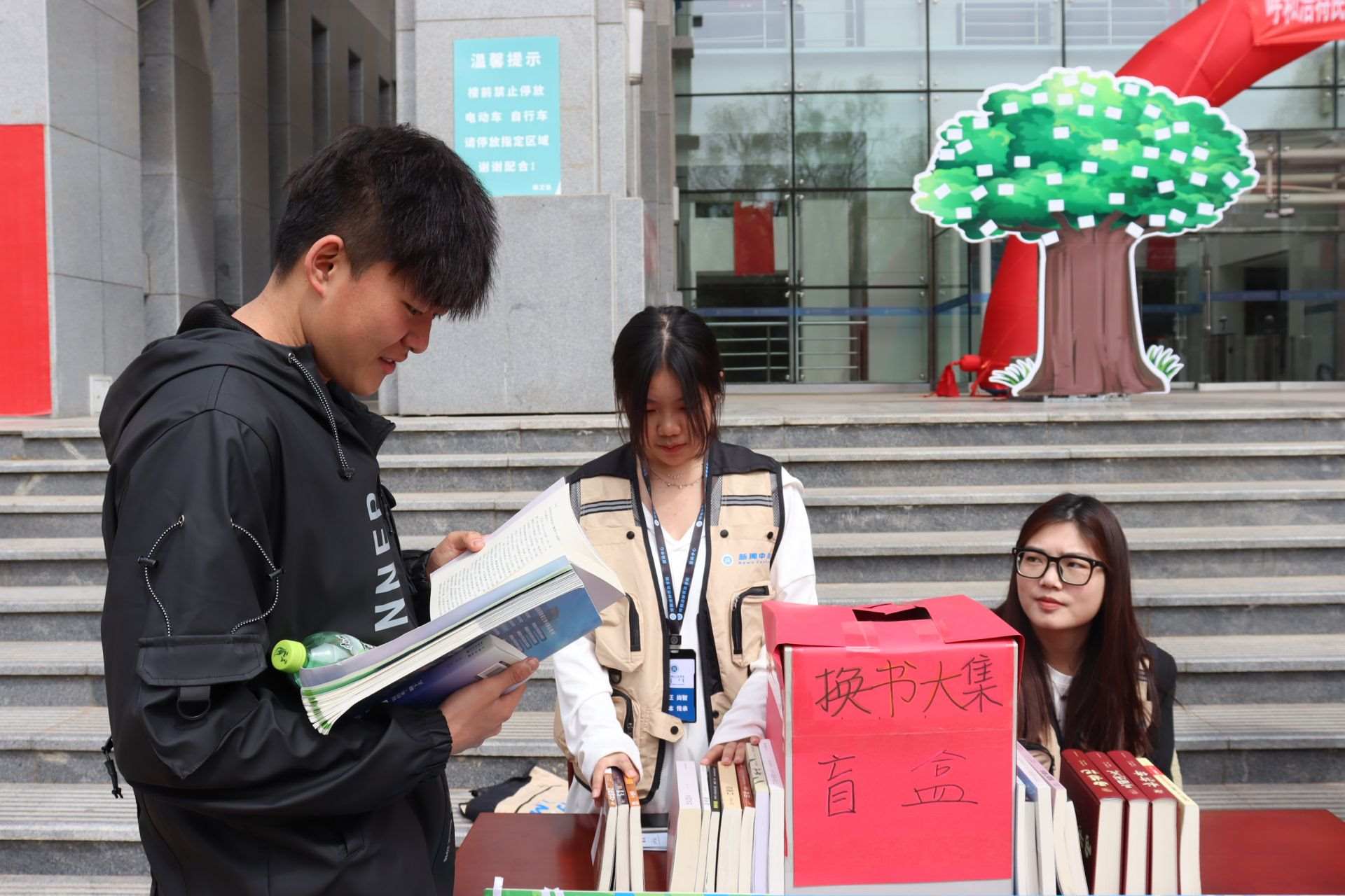 風(fēng)和日麗,春暖花開。4月23日,第28個(gè)世界讀書日,呼和浩特民族學(xué)院在南區(qū)圖書館前開展“換書大集”活動(dòng),現(xiàn)場共設(shè)置18個(gè)換書展位,特別設(shè)立換書“盲盒區(qū)”,現(xiàn)場換書300余本,同學(xué)們廣泛參與,場面火熱。