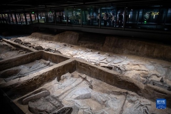 5月20日,在熊家冢國(guó)家考古遺址公園,游客在車(chē)馬坑前參觀(guān)。