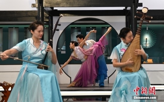 9月1日,表演者演繹中國(guó)傳統(tǒng)器樂和舞蹈。當(dāng)日,杭州亞運(yùn)會(huì)主媒體中心舉行媒體開放日活動(dòng),現(xiàn)場(chǎng)亮相的科技與傳統(tǒng)文化項(xiàng)目引人體驗(yàn)。中新社記者 王剛 攝