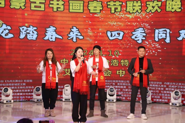 北疆新聞呼和浩特消息 1月10日,以“祥龍?zhí)ご簛? 四季同歡歌”為主題的第三屆內(nèi)蒙古書畫春節(jié)聯(lián)歡晚會(huì)在呼和浩特圓滿舉行。本次晚會(huì)匯聚了近500位內(nèi)蒙古老中青書畫家、演藝明星、政企嘉賓以及熱愛中國(guó)傳統(tǒng)文化的社會(huì)各界愛心人士代表,用書畫、歌舞、相聲等豐富多彩的形式,總結(jié)2023,展望2024。