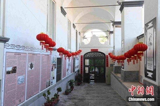 圖為6月17日拍攝的“中國(guó)學(xué)院”舊址,門廊兩側(cè)都懸掛著中式紅燈籠,有馬國(guó)賢和那不勒斯東方大學(xué)變遷史的展覽。 中新社記者 李洋 攝