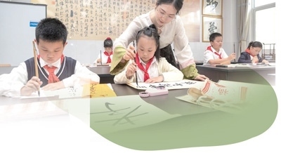 安徽合肥市小學(xué)生正在書寫家風(fēng)家訓(xùn)。趙 明攝(影像中國)