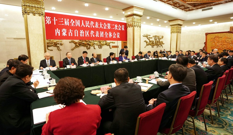 3月6日,十三屆全國人大二次會議內(nèi)蒙古代表團(tuán)全體會議向媒體開放?! ⌒氯A社記者 王毓國 攝