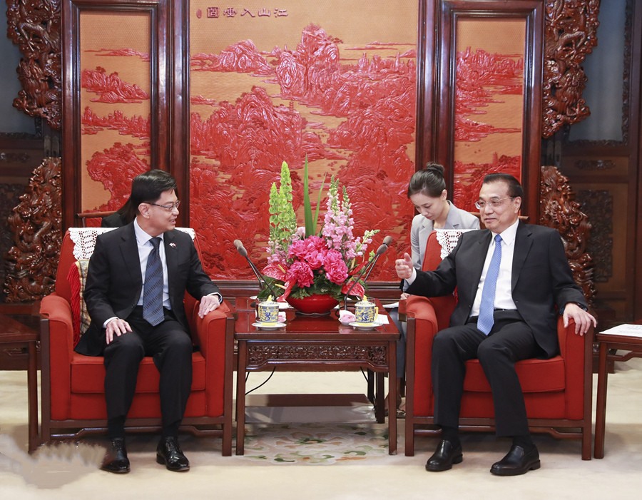 國務(wù)院總理李克強(qiáng)23日上午在中南海紫光閣會見新加坡副總理兼財(cái)政部長王瑞杰。
